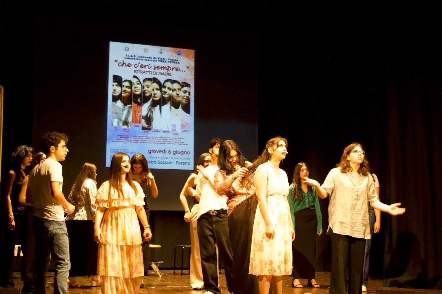 FASANO – Un turbinio di emozioni ha travolto la platea del Teatro Sociale di Fasano, il cui palcoscenico ha ospitato lo scorso giovedì 6 giugno lo spettacolo “…Che c’eri sempre…” – Ritratti di Madri, figlio del laboratorio teatrale PNRR-FUTURA dell’IISS “Leonardo da Vinci”, coordinato dai docenti Mina Corelli e Michele Iacovazzi.