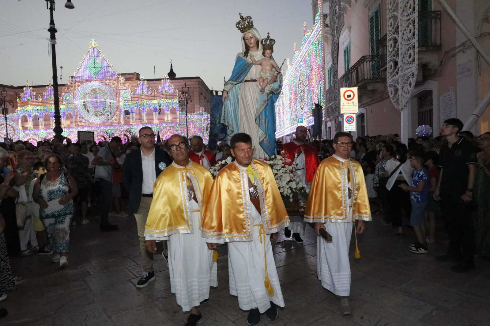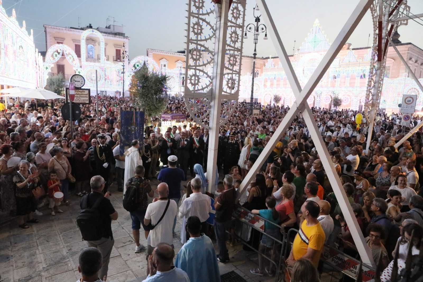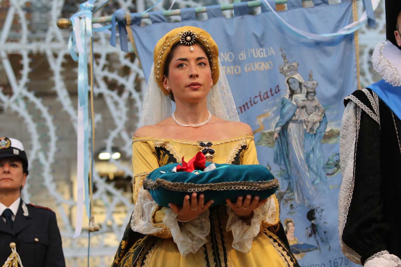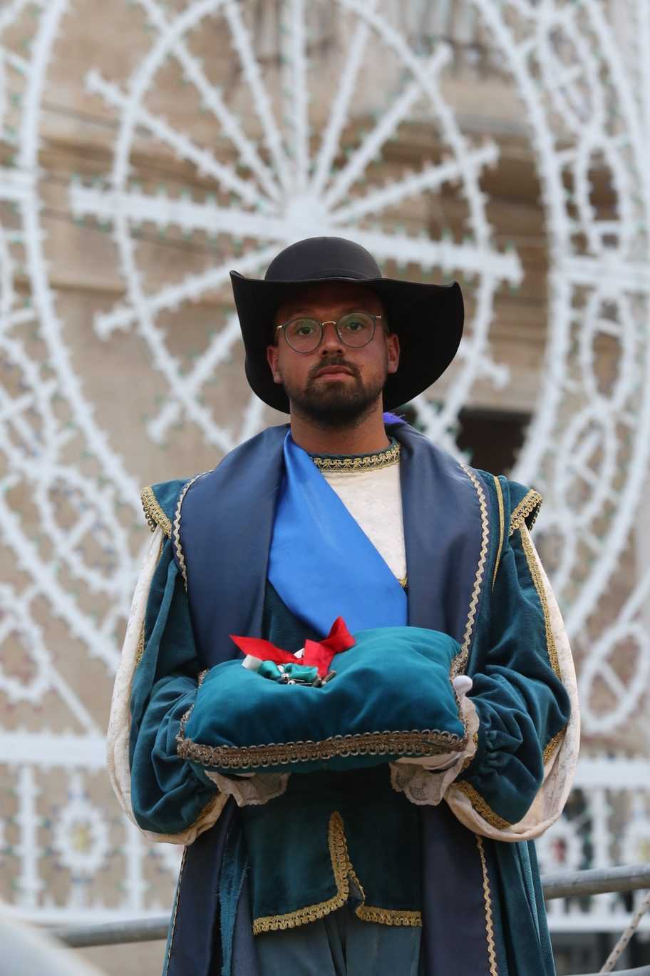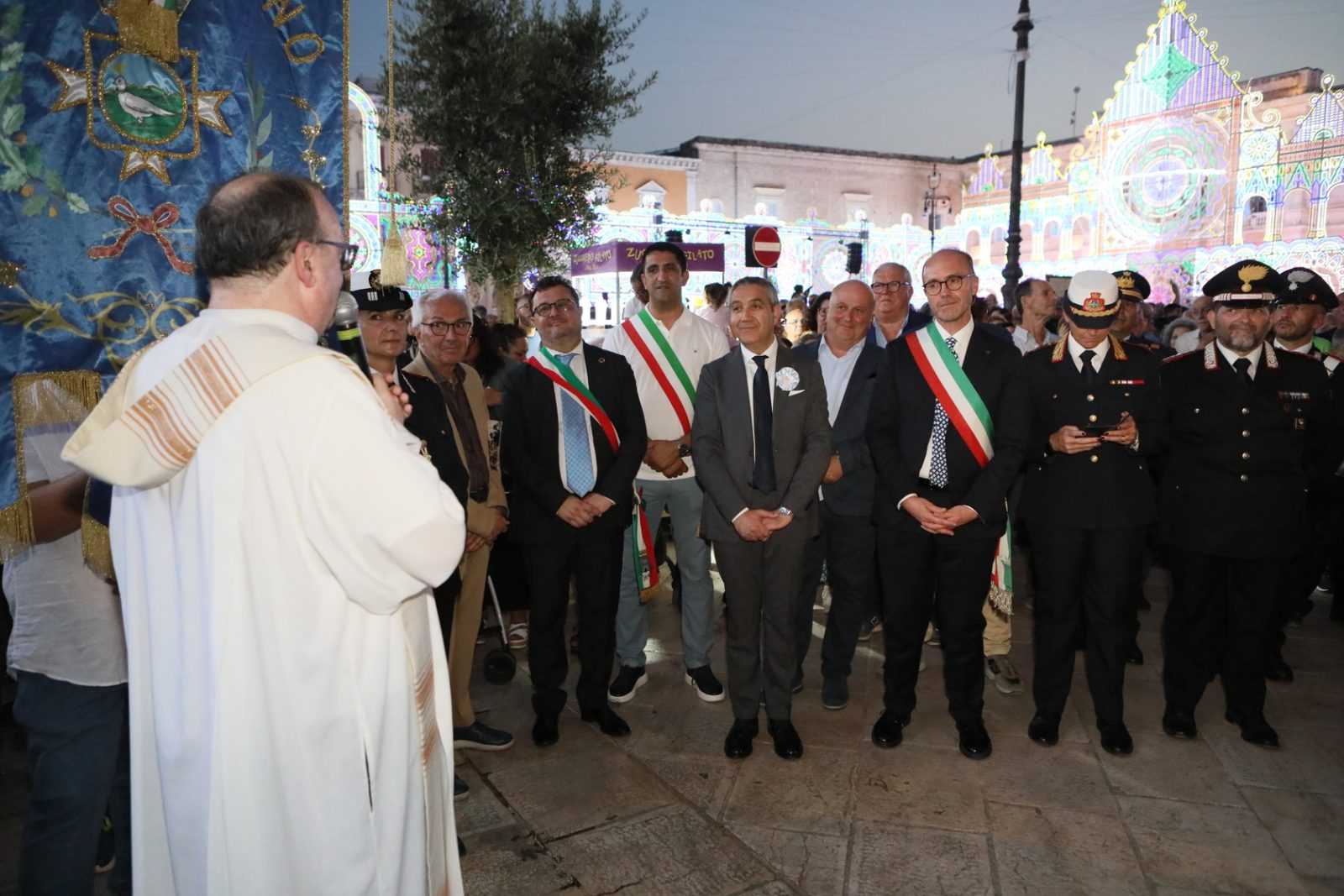 La suggestiva cerimonia della consegna delle chiavi della città ha rappresentato uno dei momenti più emozionanti della serata. Il sindaco di Fasano, Francesco Zaccaria, ha simbolicamente consegnato le chiavi nelle mani del sindaco figurante, Pompeo Mignozza, donate poi ai Santi Patroni.