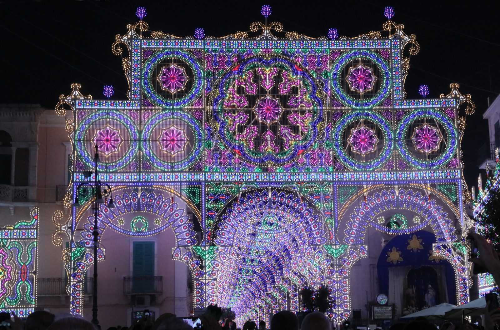 La benedizione di don Sandro Ramirez, il priore di Fasano, ha dato il via alle celebrazioni e all’accensione delle luminarie artistiche curate dalla Premiata Ditta Antonio Santoro. Il messaggio “Fasano Terra di Pace e centro del mondo” ha illuminato la piazza con le splendide luminarie candidate Patrimonio dell’Unesco.