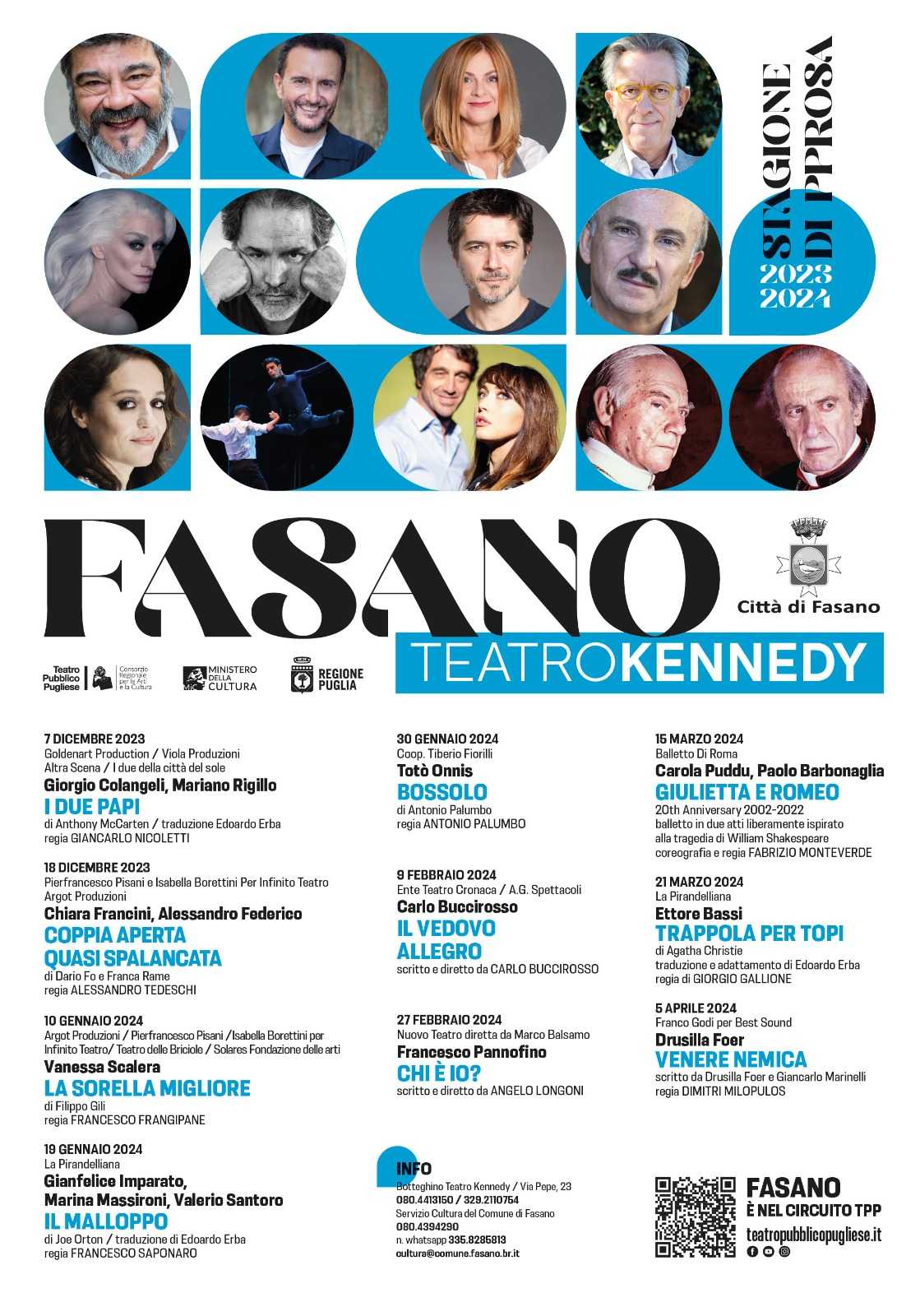 FASANO – Dieci spettacoli al Teatro Kennedy di Fasano per la nuova stagione organizzata dalla Città di Fasano – Assessorato alla Cultura col Teatro Pubblico Pugliese.