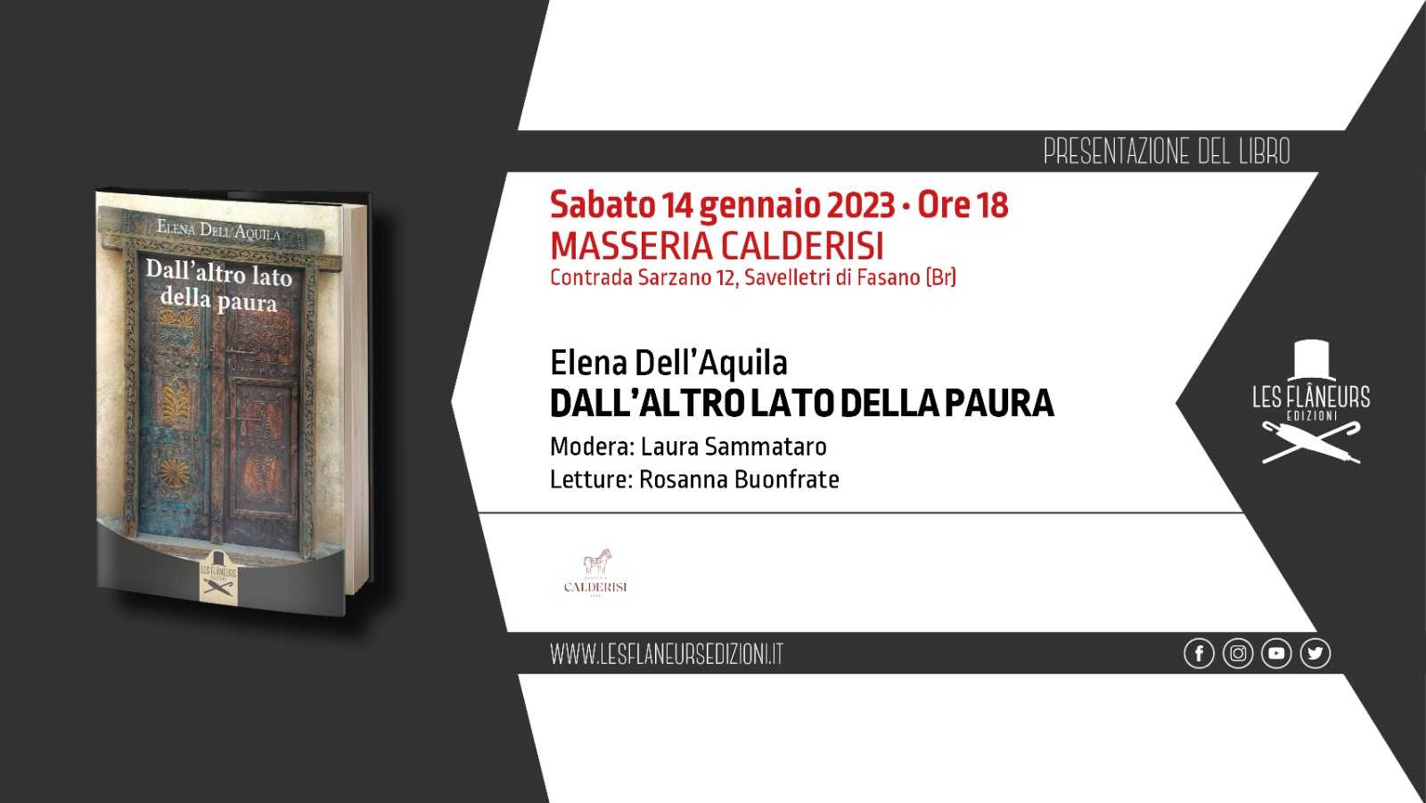 FASANO – Si terrà sabato 14 gennaio, a Masseria Calderisi (C.da Sarzano, 12) a Savelletri di Fasano alle ore 18, la presentazione del nuovo libro di Elena Dell’Aquila.