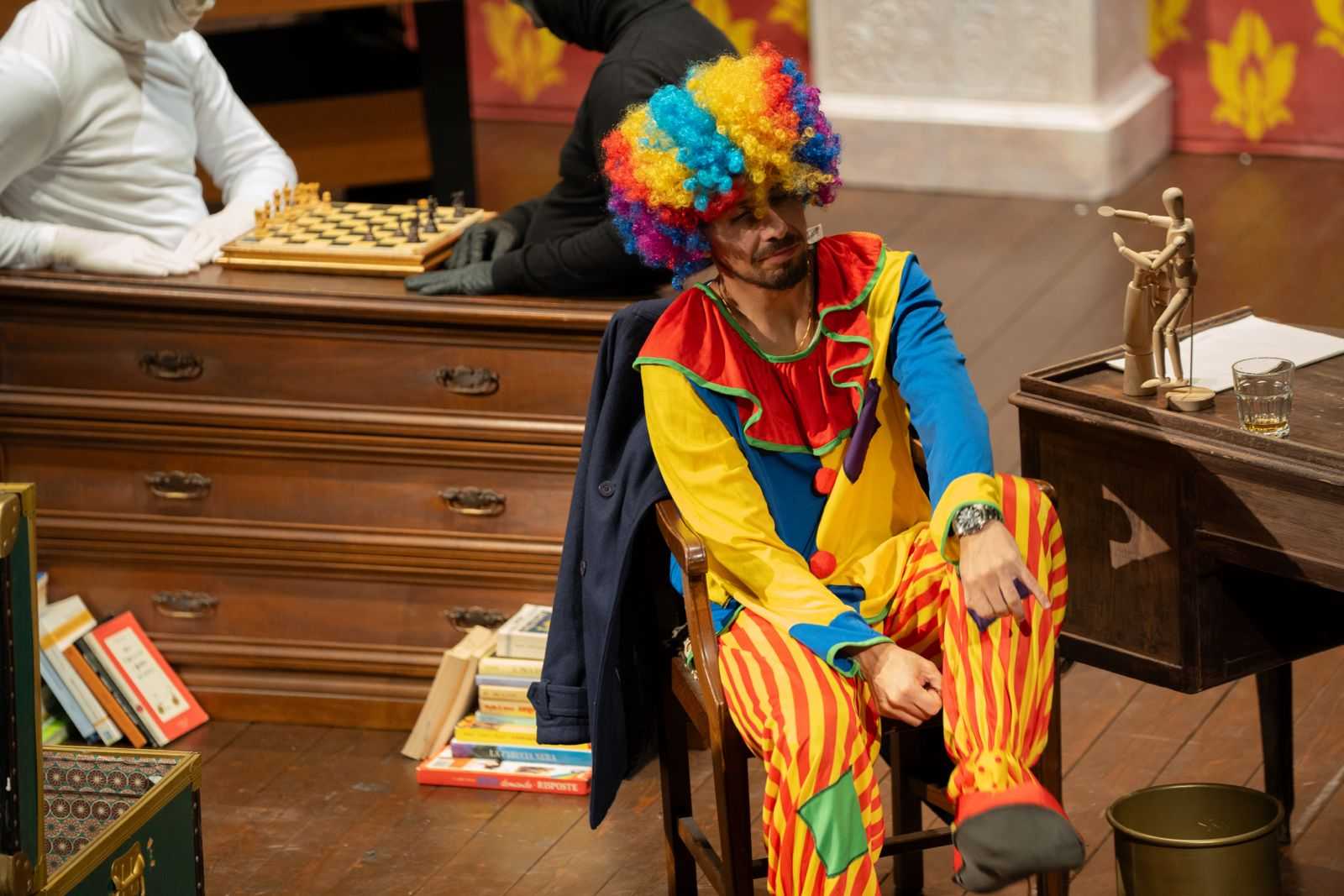 Curioso è lo stratagemma di adottare le figure dei due automi, Jolly e Jack (Luigi D’Avino e Marco Pedrali), che durante lo svolgersi della vicenda muovono in automatico delle pedine sulla scacchiera; forse che le pedine non siano in realtà i due protagonisti, più che innocui strumenti di gioco?