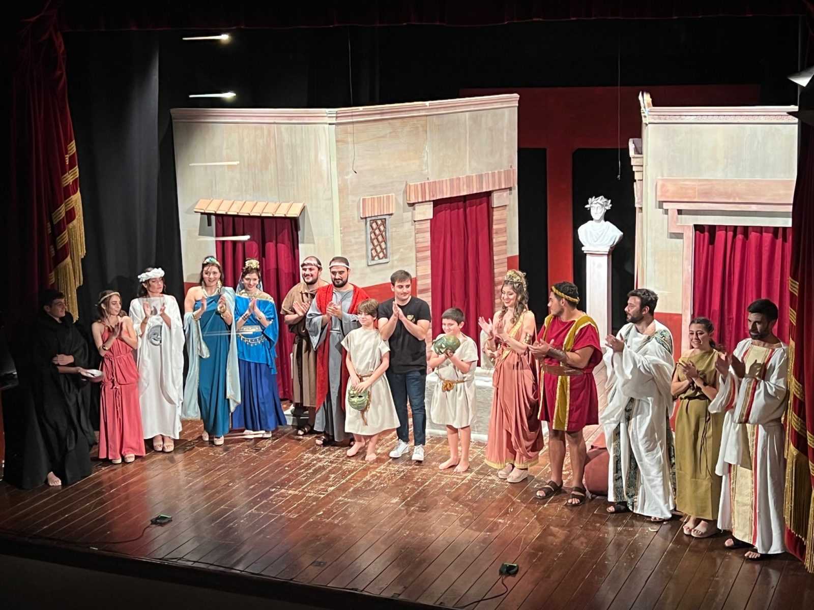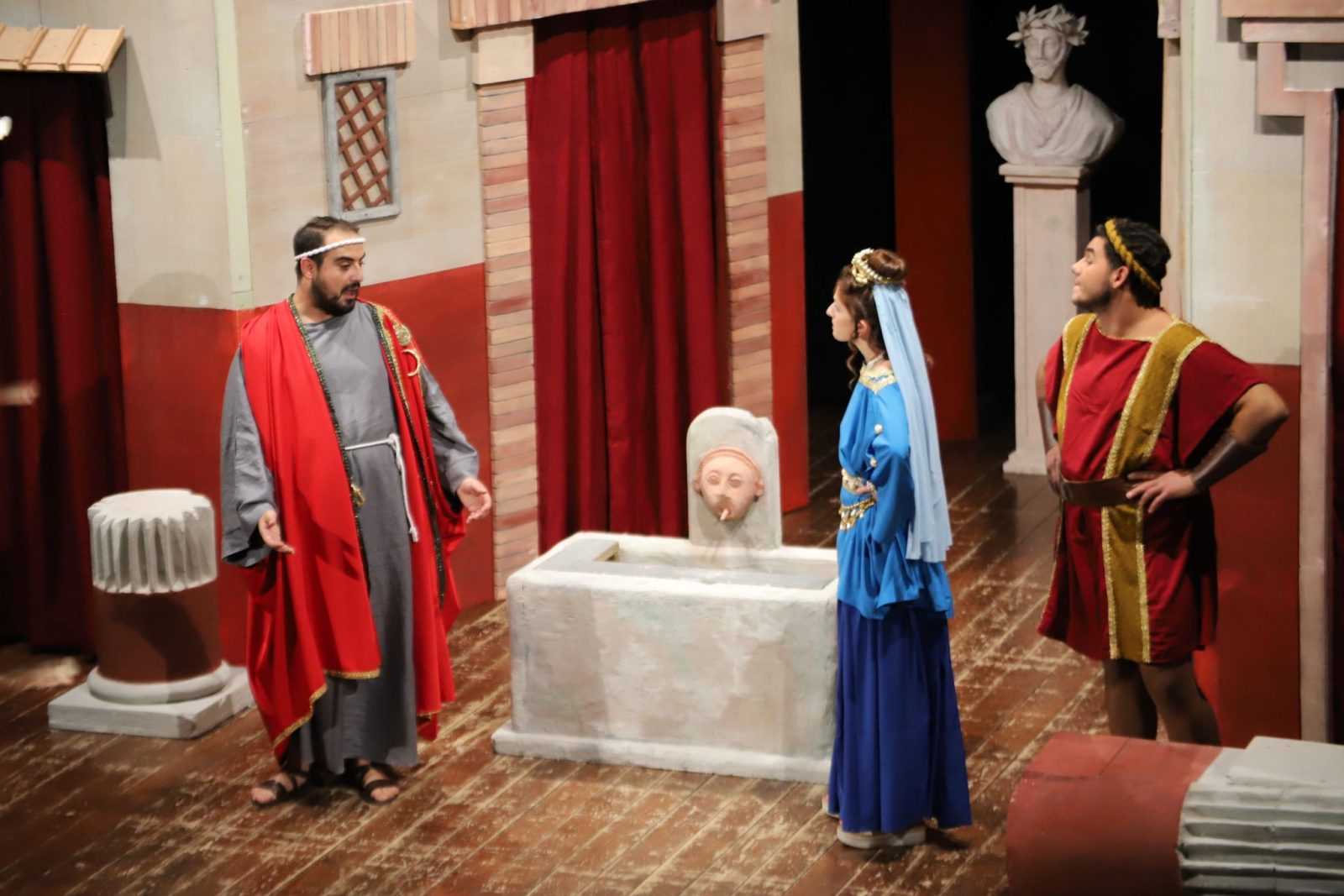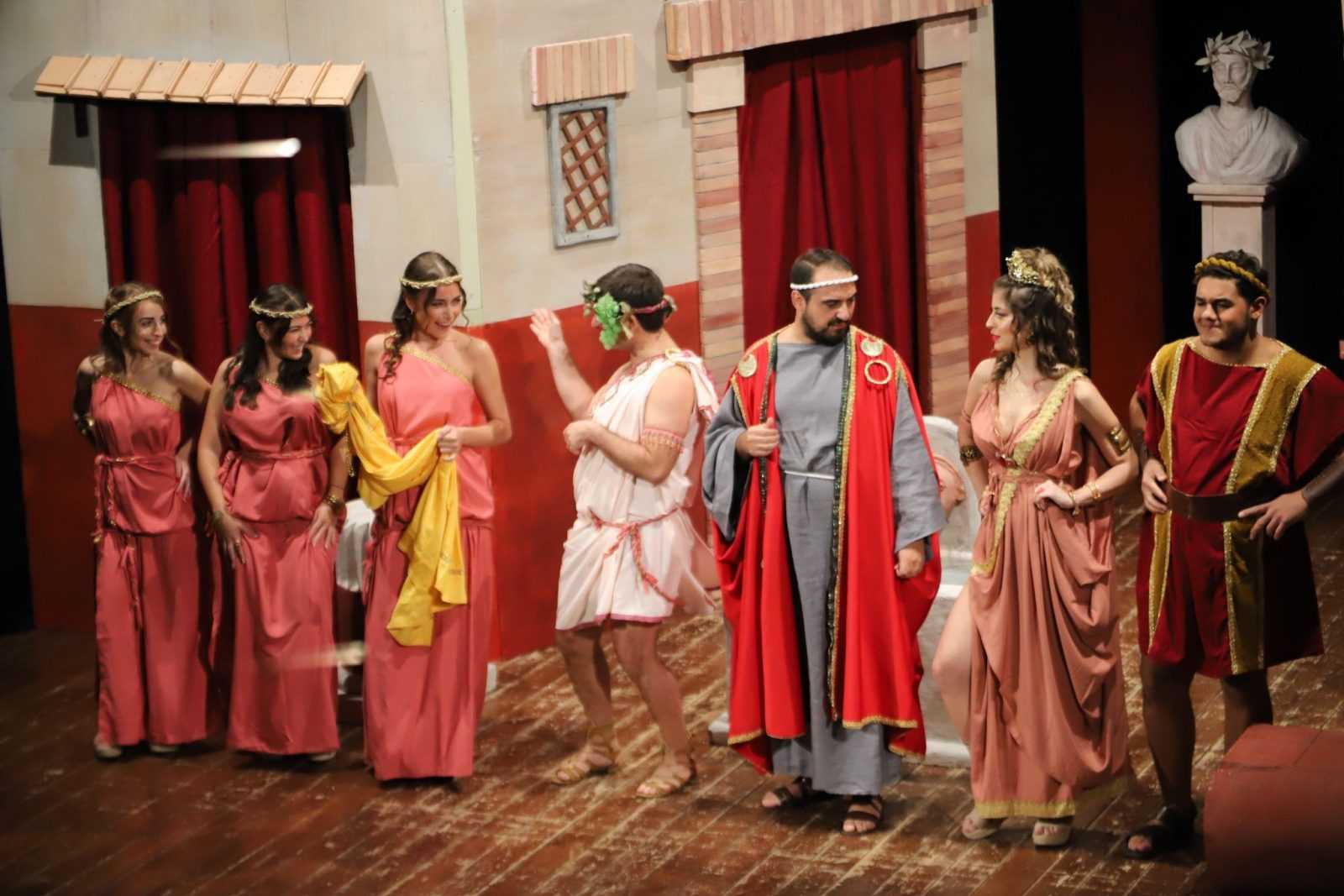Nel complesso la commedia si rivela piacevole e scorrevole nei suoi due atti da 40 minuti. La scenografia, così come i bei costumi, curati da Italia e Luigi Esposito, trasportano il pubblico nella Neapolis dell’epoca romana, piena di quella verace quotidianità che ritroviamo ancora oggi e che gli attori, non a caso napoletani, interpretano benissimo. Uno spettacolo in cui si ride di gusto, con i meritati applausi del pubblico.