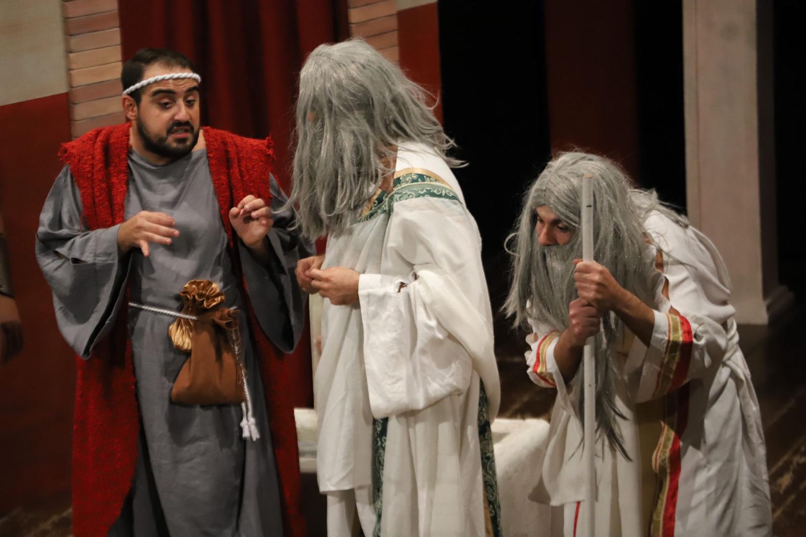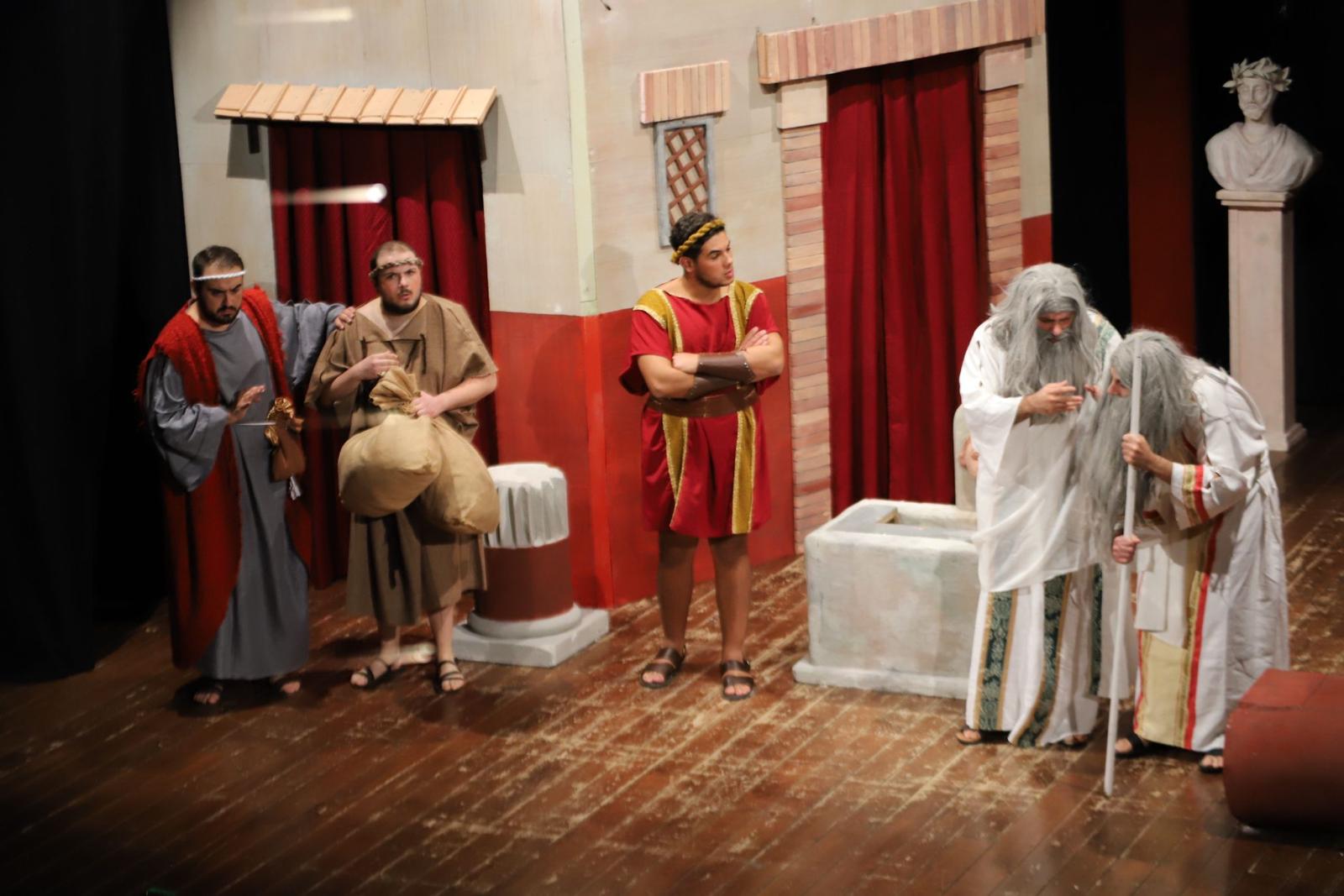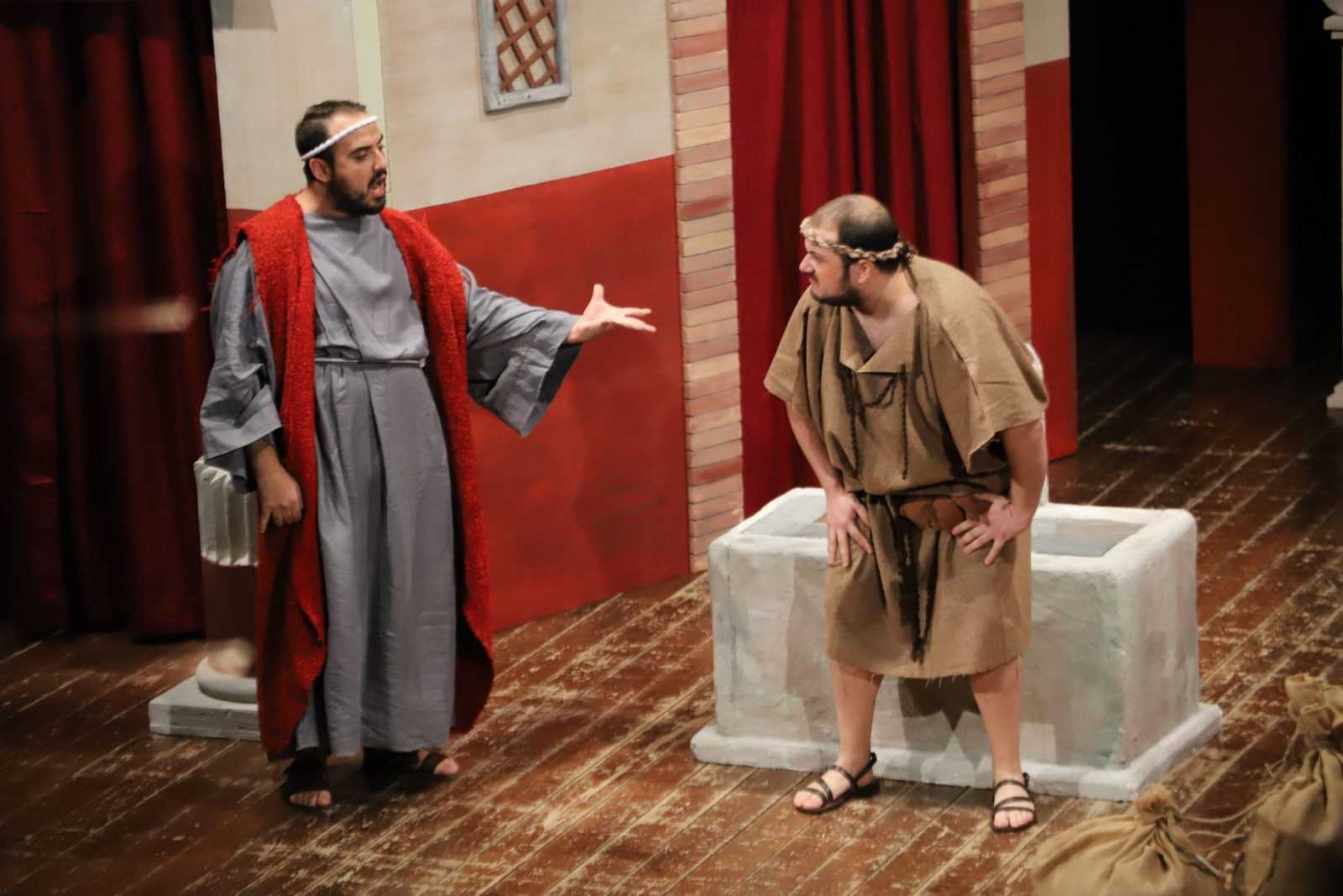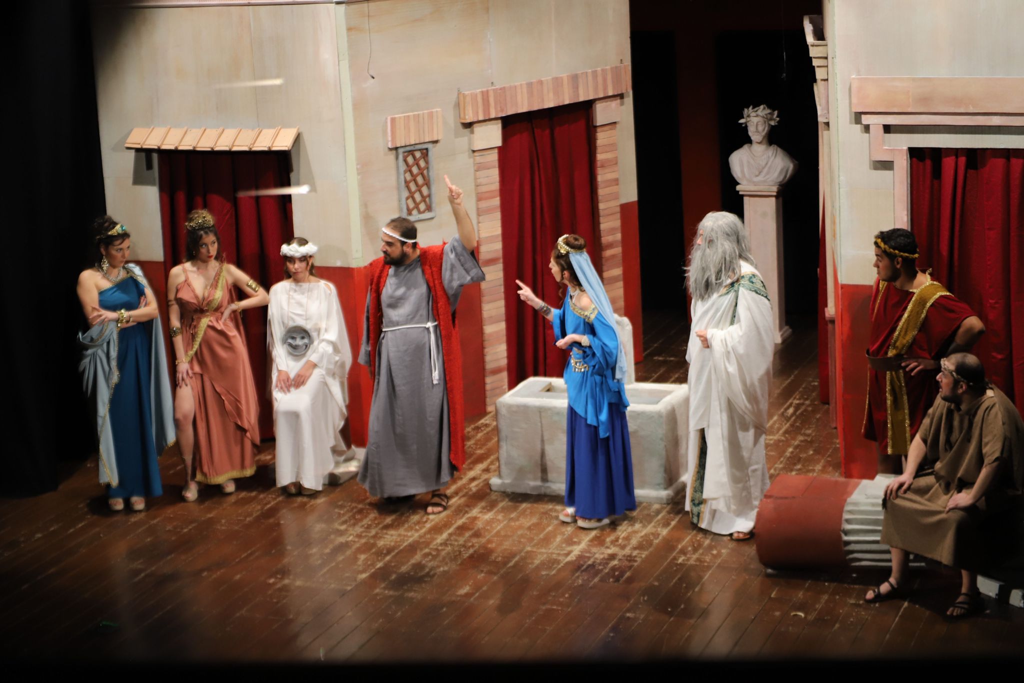 Nel complesso la commedia si rivela piacevole e scorrevole nei suoi due atti da 40 minuti. La scenografia, così come i bei costumi, curati da Italia e Luigi Esposito, trasportano il pubblico nella Neapolis dell’epoca romana, piena di quella verace quotidianità che ritroviamo ancora oggi e che gli attori, non a caso napoletani, interpretano benissimo. Uno spettacolo in cui si ride di gusto, con i meritati applausi del pubblico.