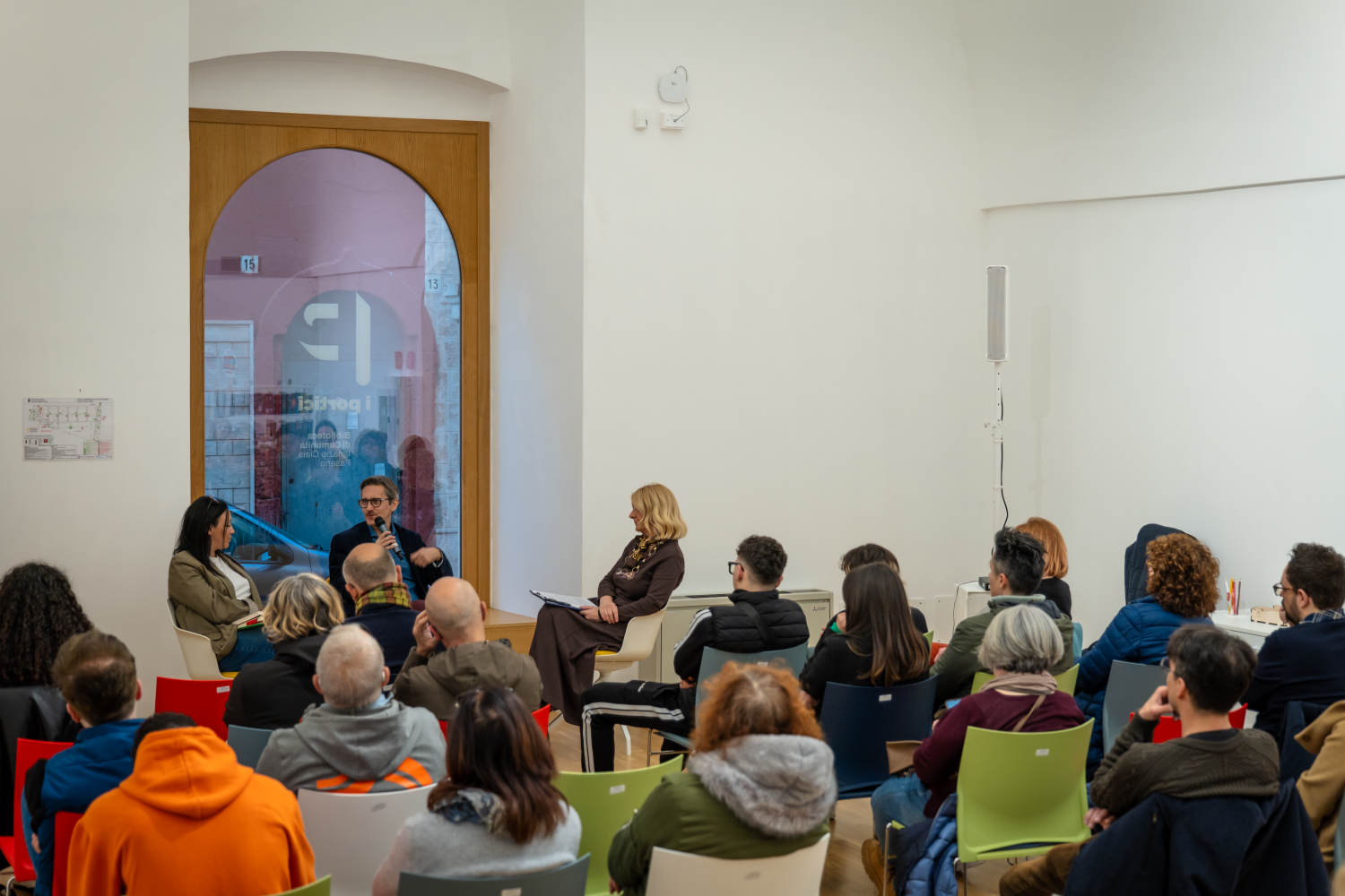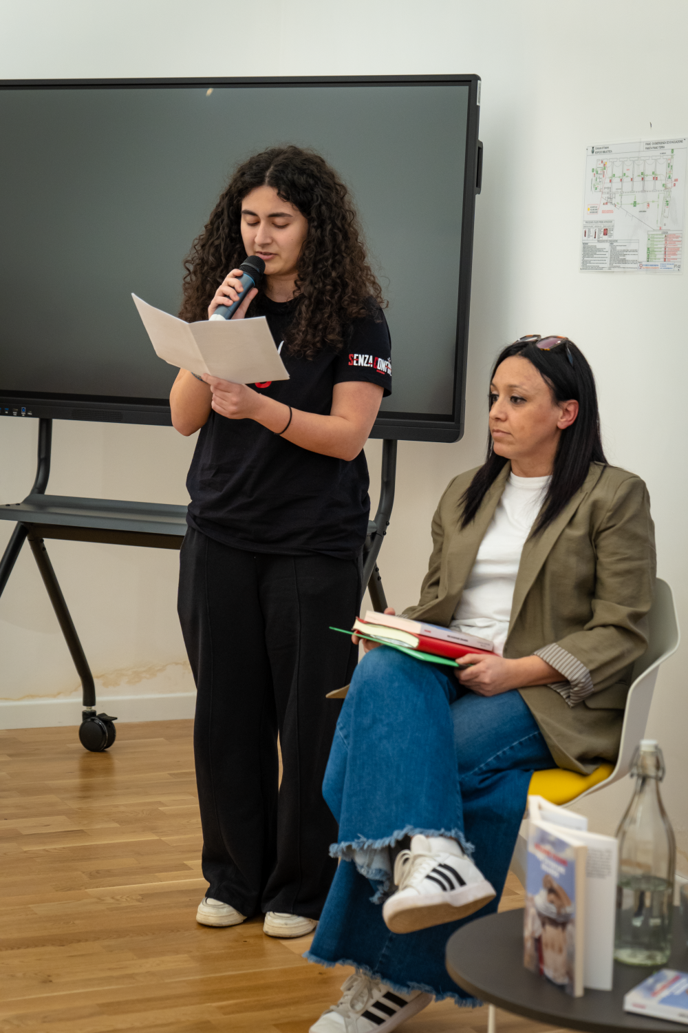 A condurre l’incontro con l’autore sono state Cinzia Cupertino e Teresa Cecere, mentre la giovane voce di Simona Taddeo, allieva della scuola Officine Future, ha letto alcuni brani del romanzo.