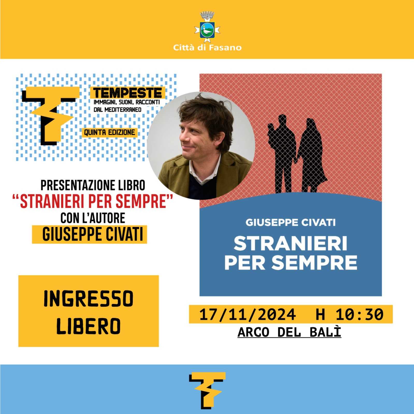 FASANO – Prosegue il festival “Tempeste – Immagini, suoni e racconti dal Mediterraneo” con un doppio appuntamento in calendario domani, domenica 17 novembre, a Fasano.
