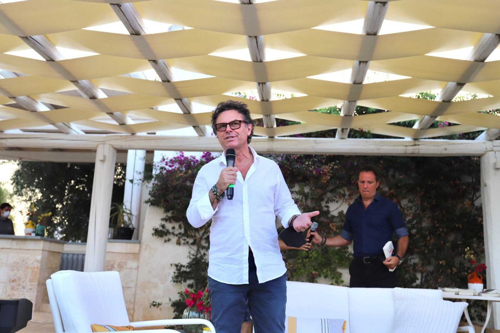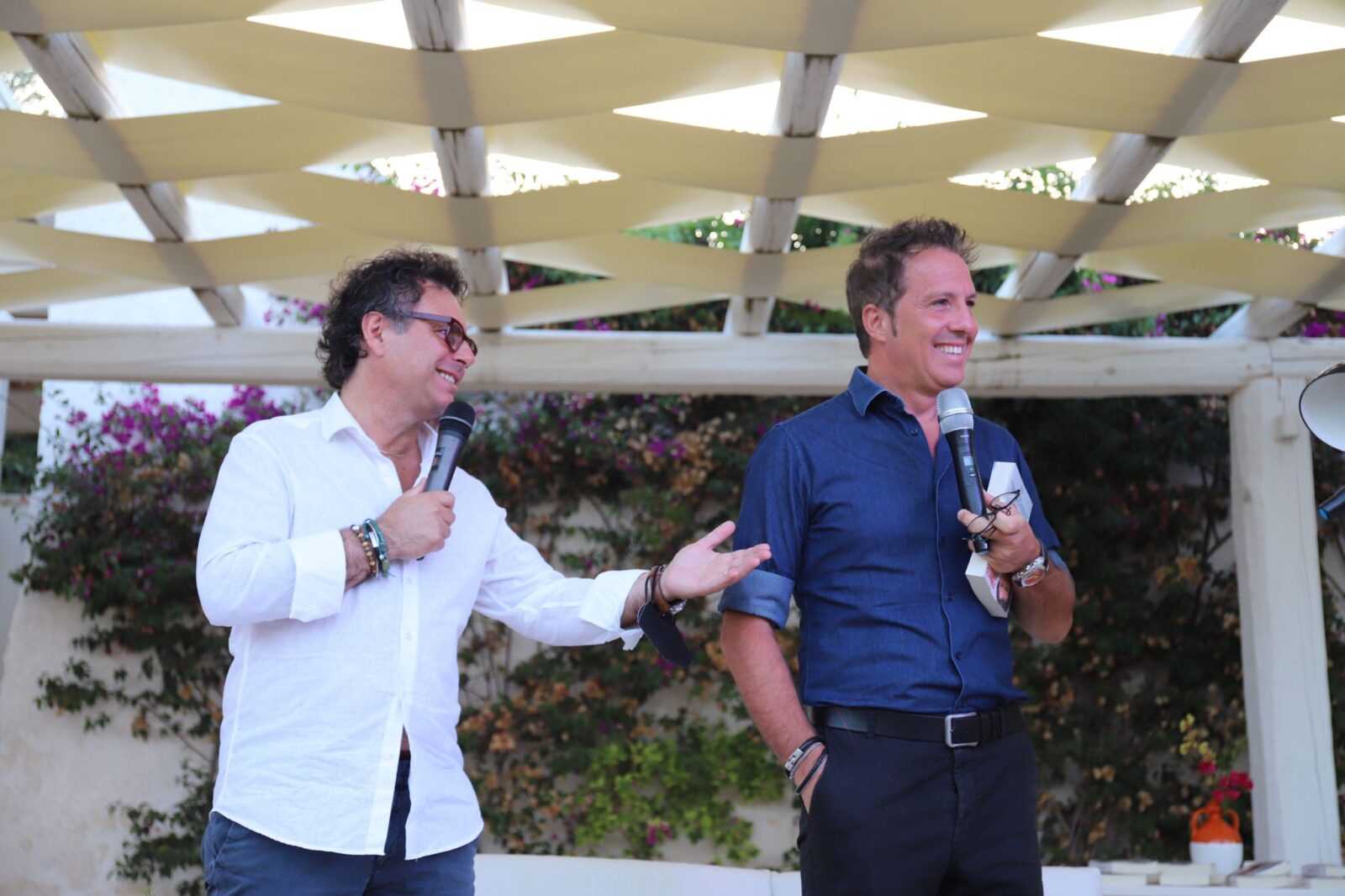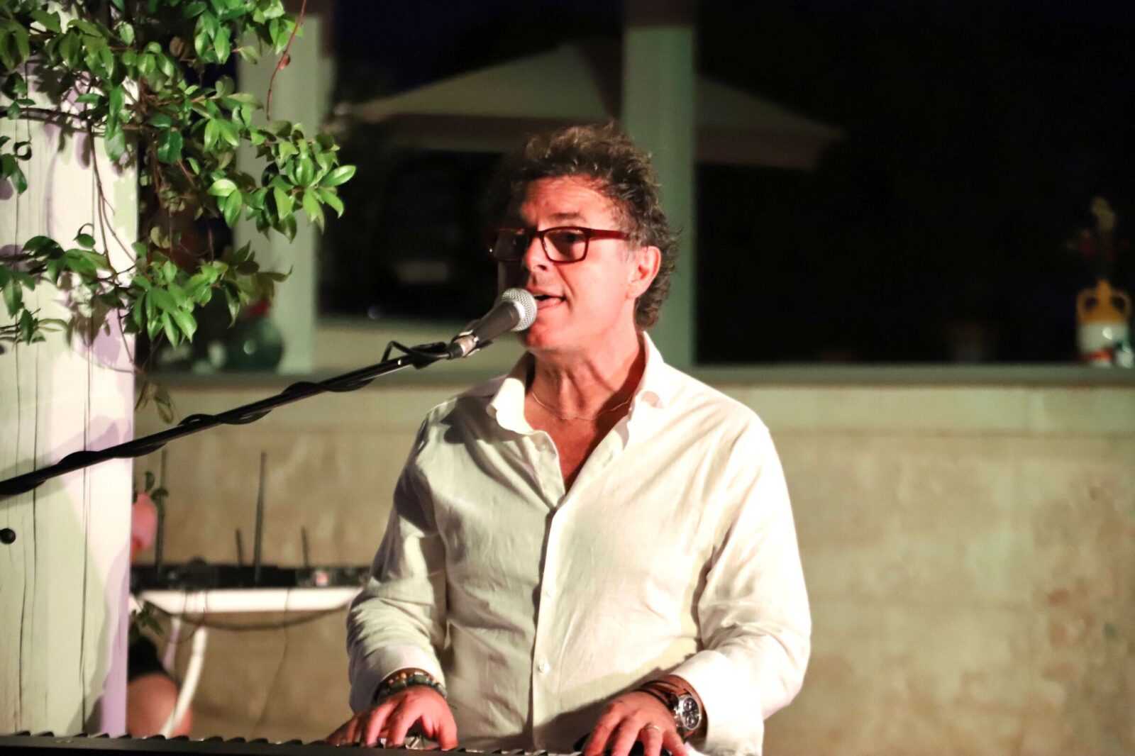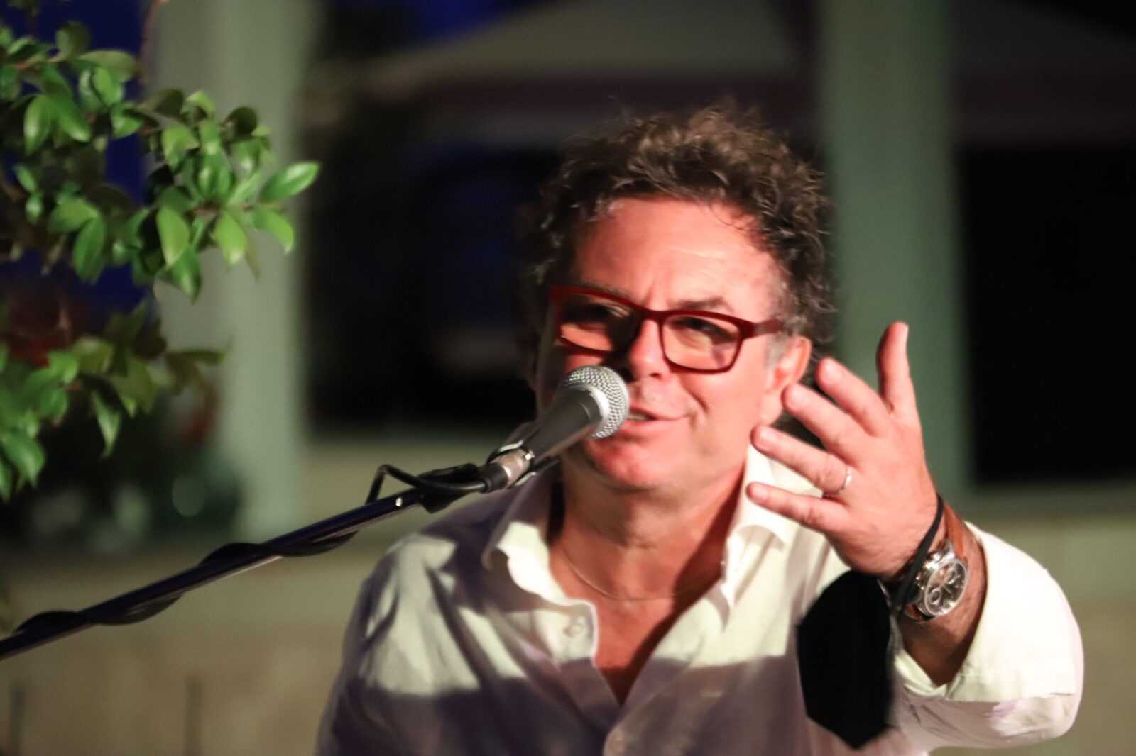 FASANO – Un magnifico e nostalgico viaggio negli ultimi quarant’anni della musica leggera italiana quello regalato al pubblico da Franco Fasano. Il cantante e autore ligure, ma di origini pugliesi dal lato paterno, è stato il protagonista assoluto, grazie alla sua simpatia e disponibilità, dell’ultimo, imperdibile appuntamento di LibriAmo…tra gli ulivi!, che si è tenuto ieri (1 agosto) nella Masseria San Giovanni. Dopo i saluti e i ringraziamenti (e un arrivederci alla prossima edizione 2022) di un’emozionata Laura De Mola – «sono felice perché chiudo con due grandissimi amici», ha confessato – che della rassegna ne è l’ideatrice assieme alla collaborazione del locale Mondadori Point, il compito di condurre i presenti in questo lungo, bellissimo viaggio, fatto di parole e di musica, è stato Savino Zaba, anticipando che la serata sarebbe stata «come entrare nel salotto di casa sua». Il riferimento era a Franco Fasano che ha presentato il suo primo libro, dal titolo Io amo. Dal muretto di Alassio al Festival di Sanremo. Dallo Zecchino d’Oro alle sigle per i cartoni animati. E non solo! (D’Idee Edizioni, presente l’editore) scritto a quattro mani con Massimiliano Beneggi, esperto e critico di teatro e musica italiana, intervenuto a fine serata in video chiamata.
