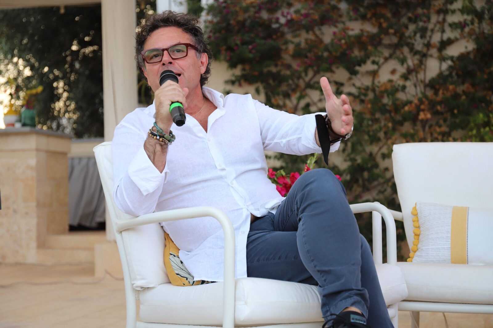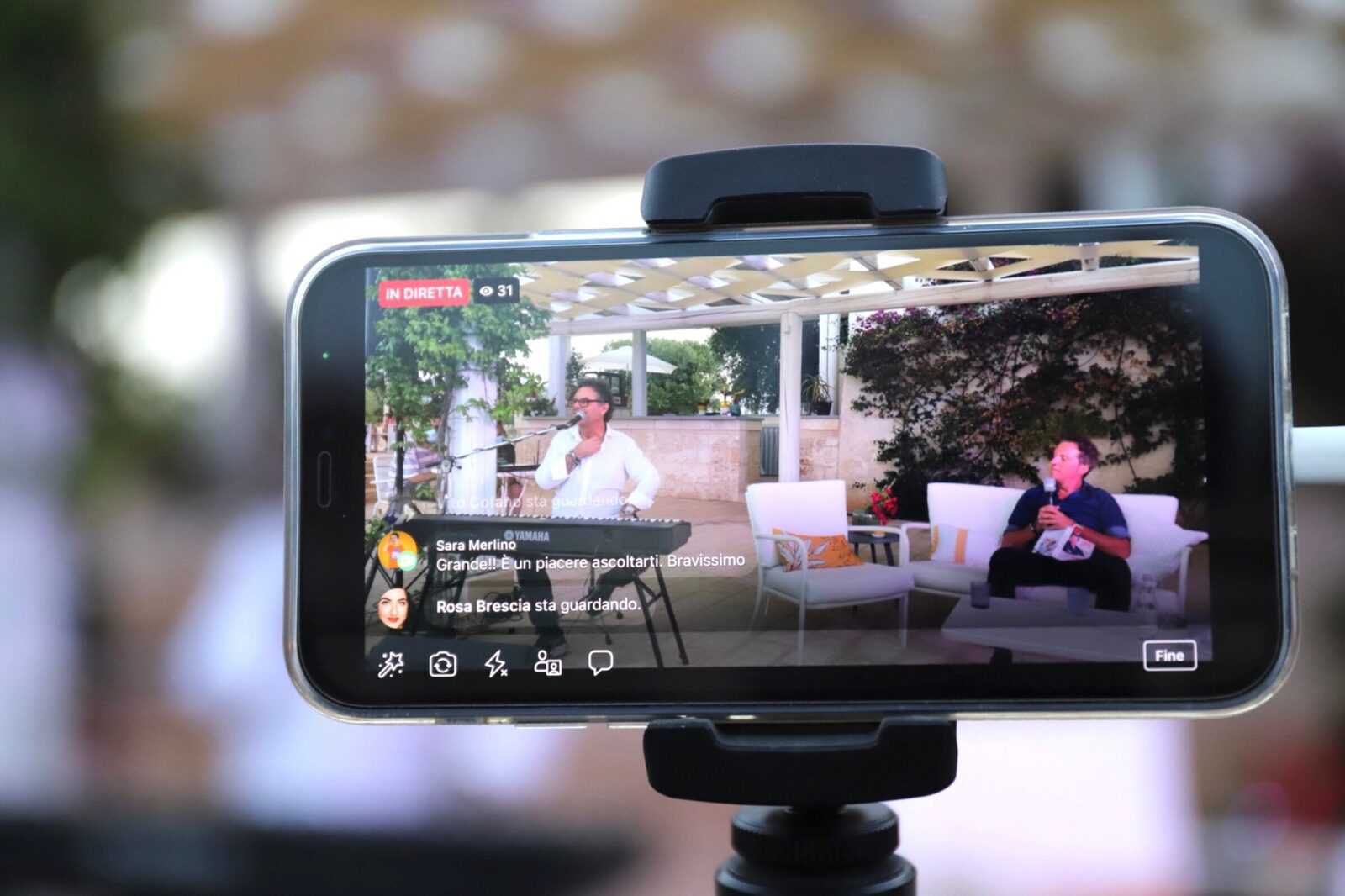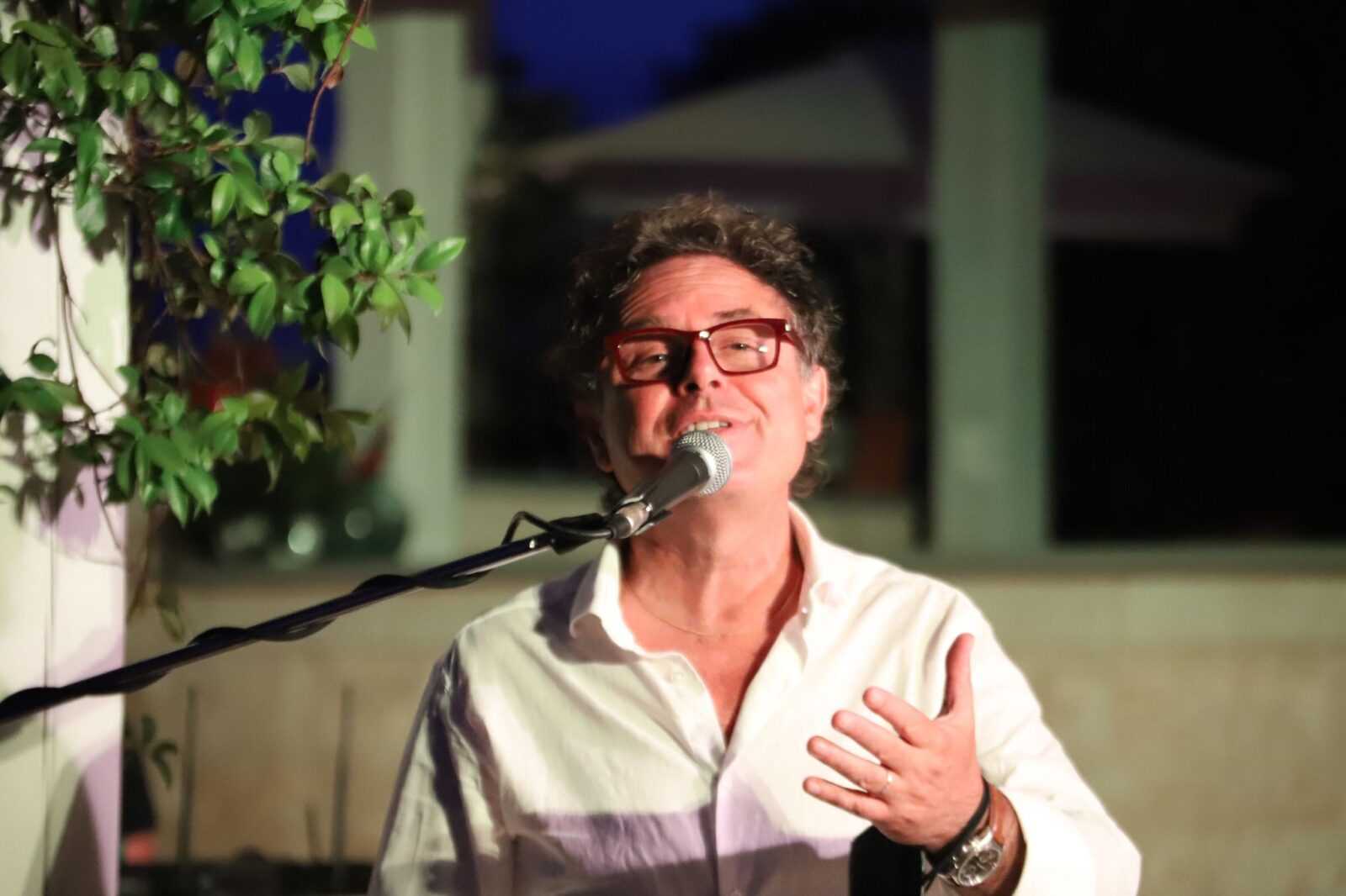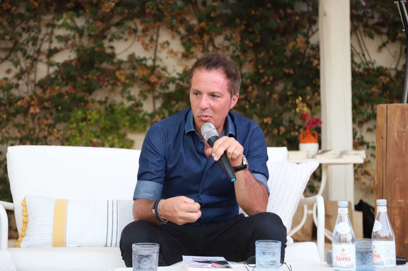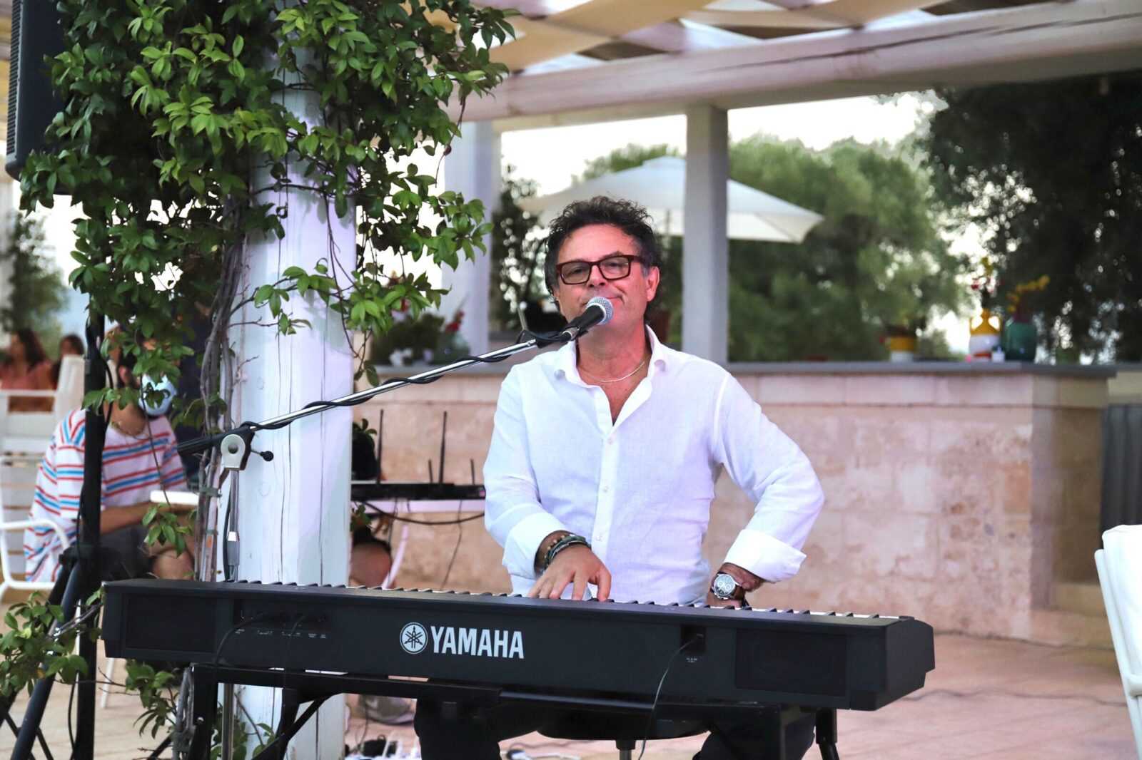 FASANO – Un magnifico e nostalgico viaggio negli ultimi quarant’anni della musica leggera italiana quello regalato al pubblico da Franco Fasano. Il cantante e autore ligure, ma di origini pugliesi dal lato paterno, è stato il protagonista assoluto, grazie alla sua simpatia e disponibilità, dell’ultimo, imperdibile appuntamento di LibriAmo…tra gli ulivi!, che si è tenuto ieri (1 agosto) nella Masseria San Giovanni. Dopo i saluti e i ringraziamenti (e un arrivederci alla prossima edizione 2022) di un’emozionata Laura De Mola – «sono felice perché chiudo con due grandissimi amici», ha confessato – che della rassegna ne è l’ideatrice assieme alla collaborazione del locale Mondadori Point, il compito di condurre i presenti in questo lungo, bellissimo viaggio, fatto di parole e di musica, è stato Savino Zaba, anticipando che la serata sarebbe stata «come entrare nel salotto di casa sua». Il riferimento era a Franco Fasano che ha presentato il suo primo libro, dal titolo Io amo. Dal muretto di Alassio al Festival di Sanremo. Dallo Zecchino d’Oro alle sigle per i cartoni animati. E non solo! (D’Idee Edizioni, presente l’editore) scritto a quattro mani con Massimiliano Beneggi, esperto e critico di teatro e musica italiana, intervenuto a fine serata in video chiamata.