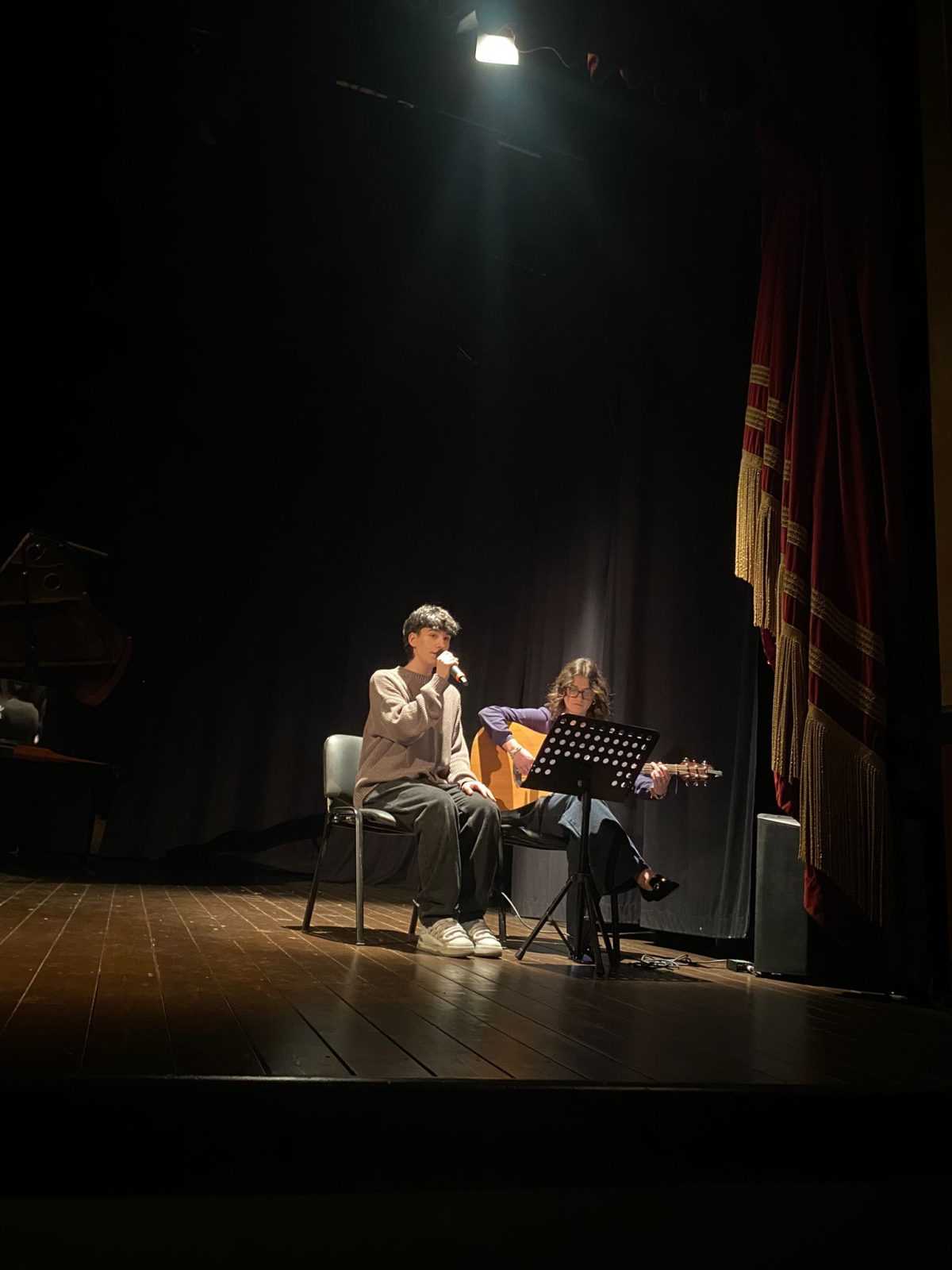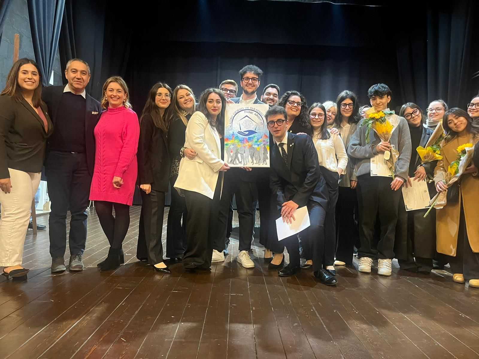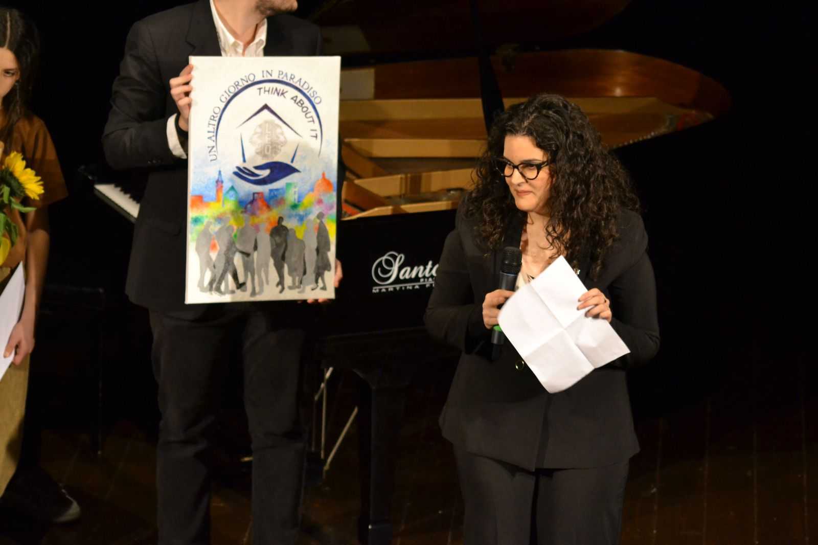 Lo spettacolo ha visto anche la partecipazione e il talento degli studenti dell’ I.I.S.S. Leonardo da Vinci di Fasano che tra monologhi, canto e chitarra si sono alternati sul palco, in un connubio artistico emozionante (Arianna Bongiorno, Simona Carrieri, Ilaria Falcioni, Beatrice Laera, Manuela Miano, Alessio Pantaleo e Antonio Ammirato). La serata è stata impreziosita inoltre dalla presenza di una tela sul palcoscenico, un’opera inedita realizzata dalla Professoressa Maria De Mola, che ha rappresentato graficamente il tema.
