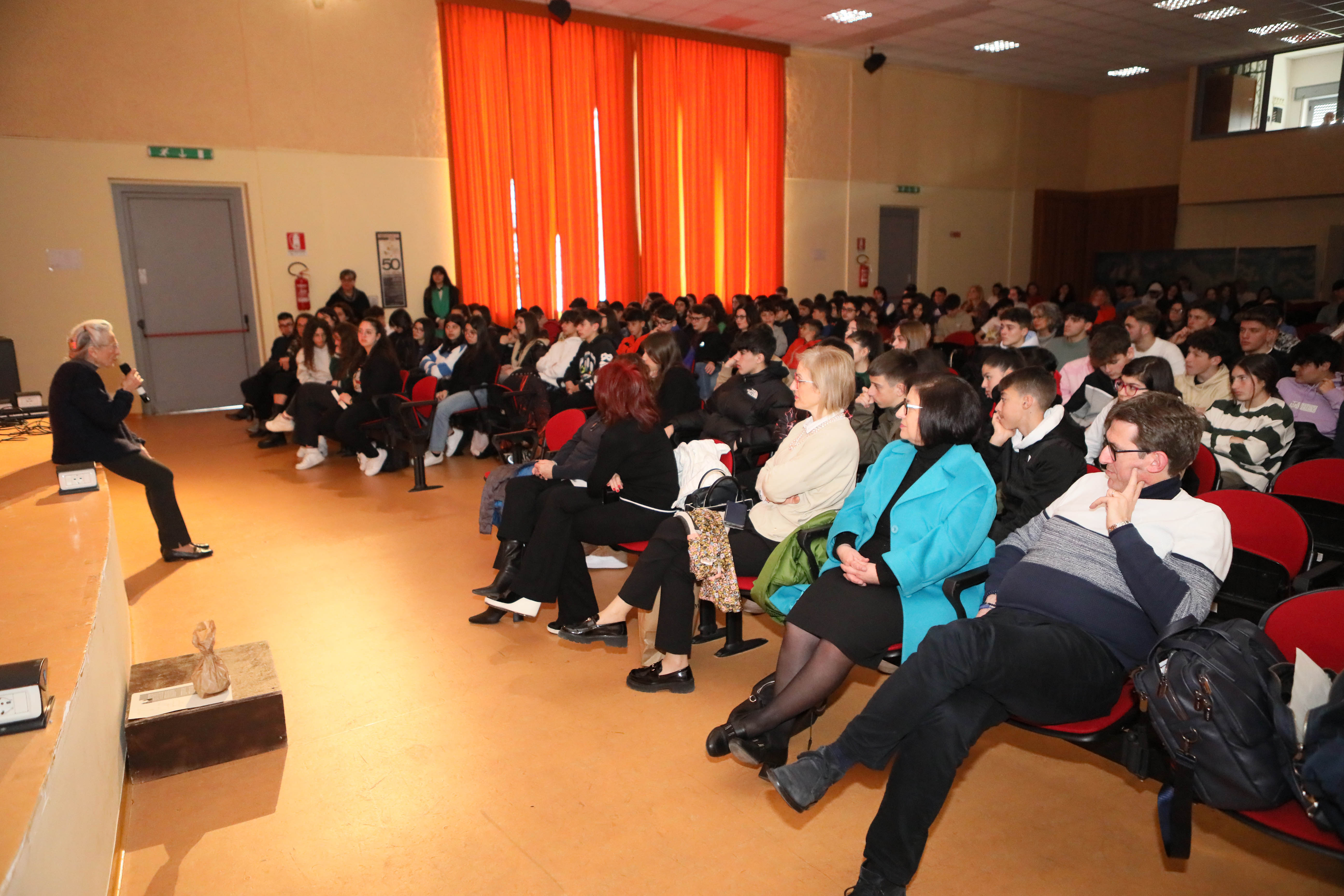 Un’atmosfera confidenziale quella creatasi poi tra Piera Levi-Montalcini e i liceali che hanno ascoltato in modo partecipato il suo intervento, invogliati alla speranza, all’ottimismo, al rischio di scegliere con coraggio la propria strada, ad alimentare sempre la curiosità e il sapere. «Nulla è già conquistato. Ogni giorno bisogna difenderlo, proteggerlo, come le piante che vanno innaffiate quotidianamente. – ha confidato Piera ai ragazzi – Pensate che all’università, alla Facoltà di Ingegneria, non c’erano i bagni per le donne. Era impensabile che una donna potesse studiare ingegneria. Lottate ogni giorno se desiderate qualcosa!»