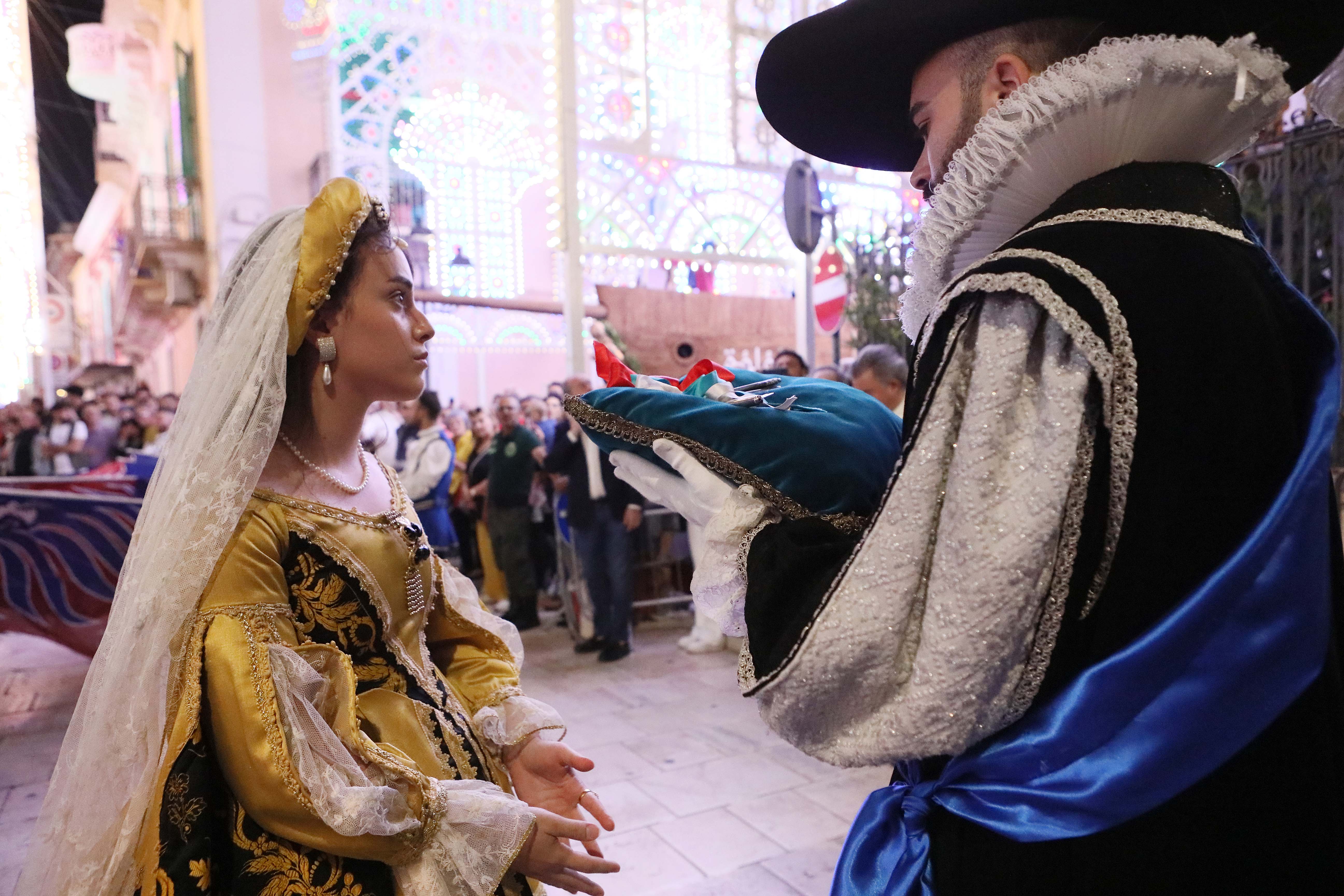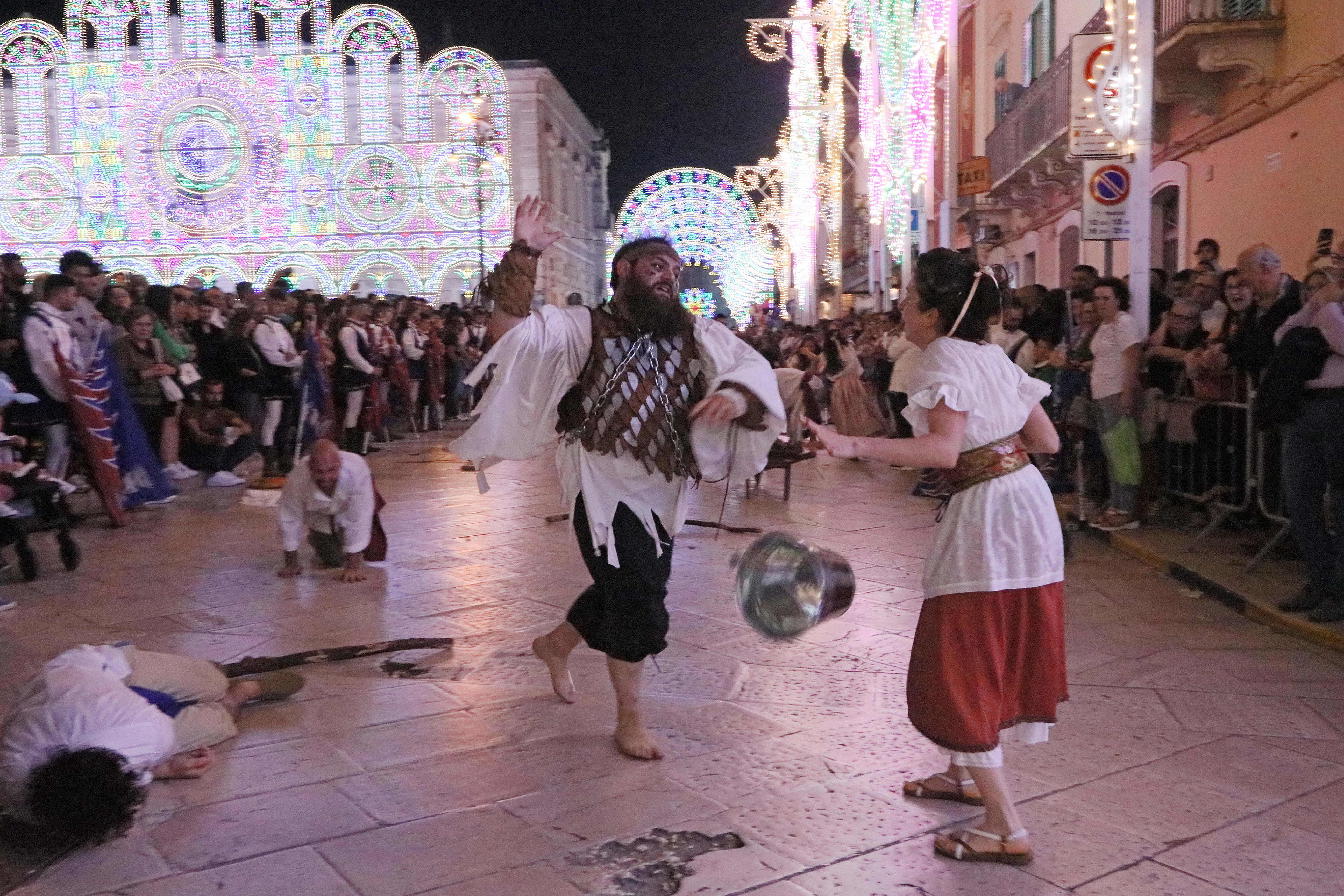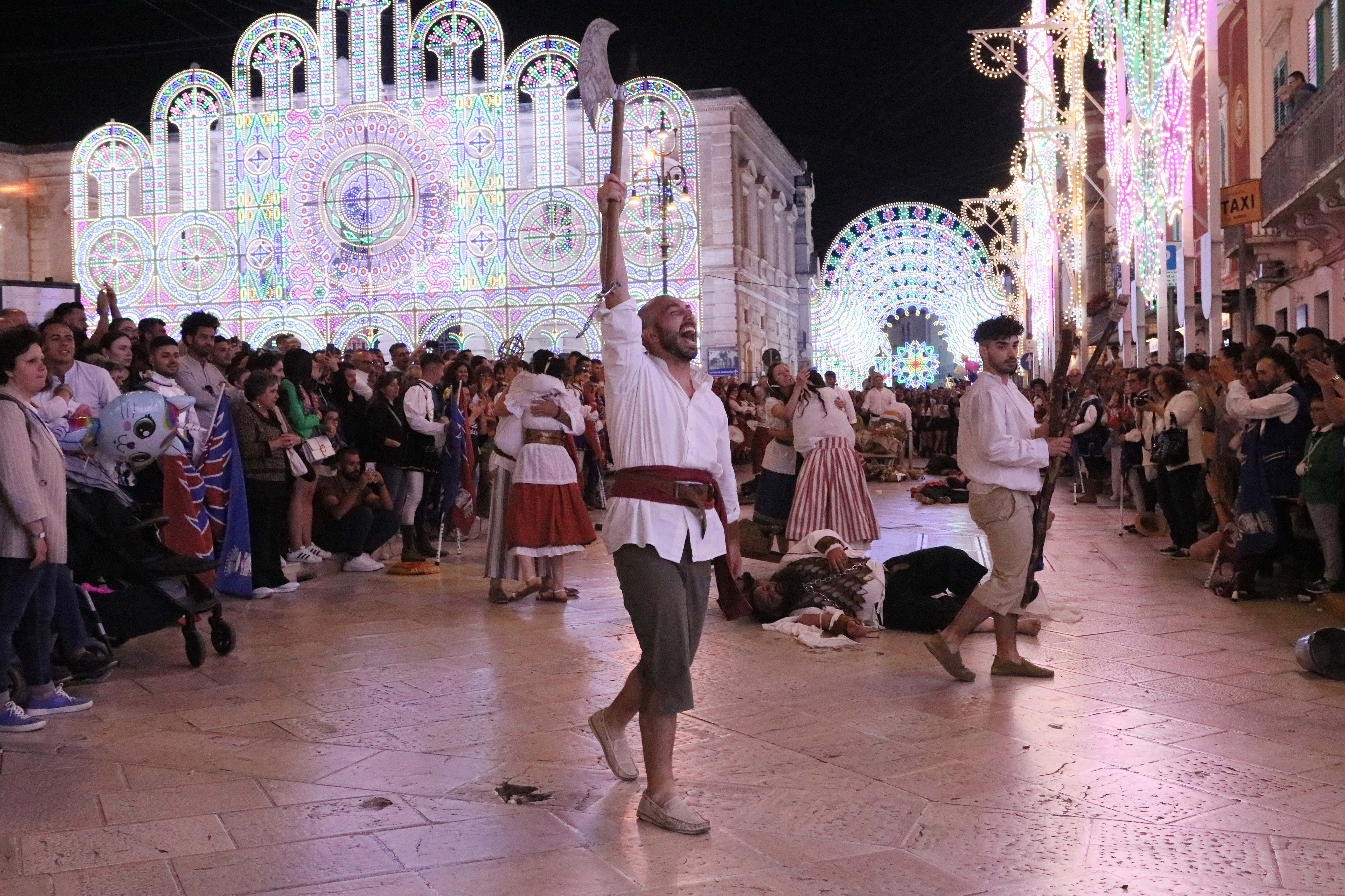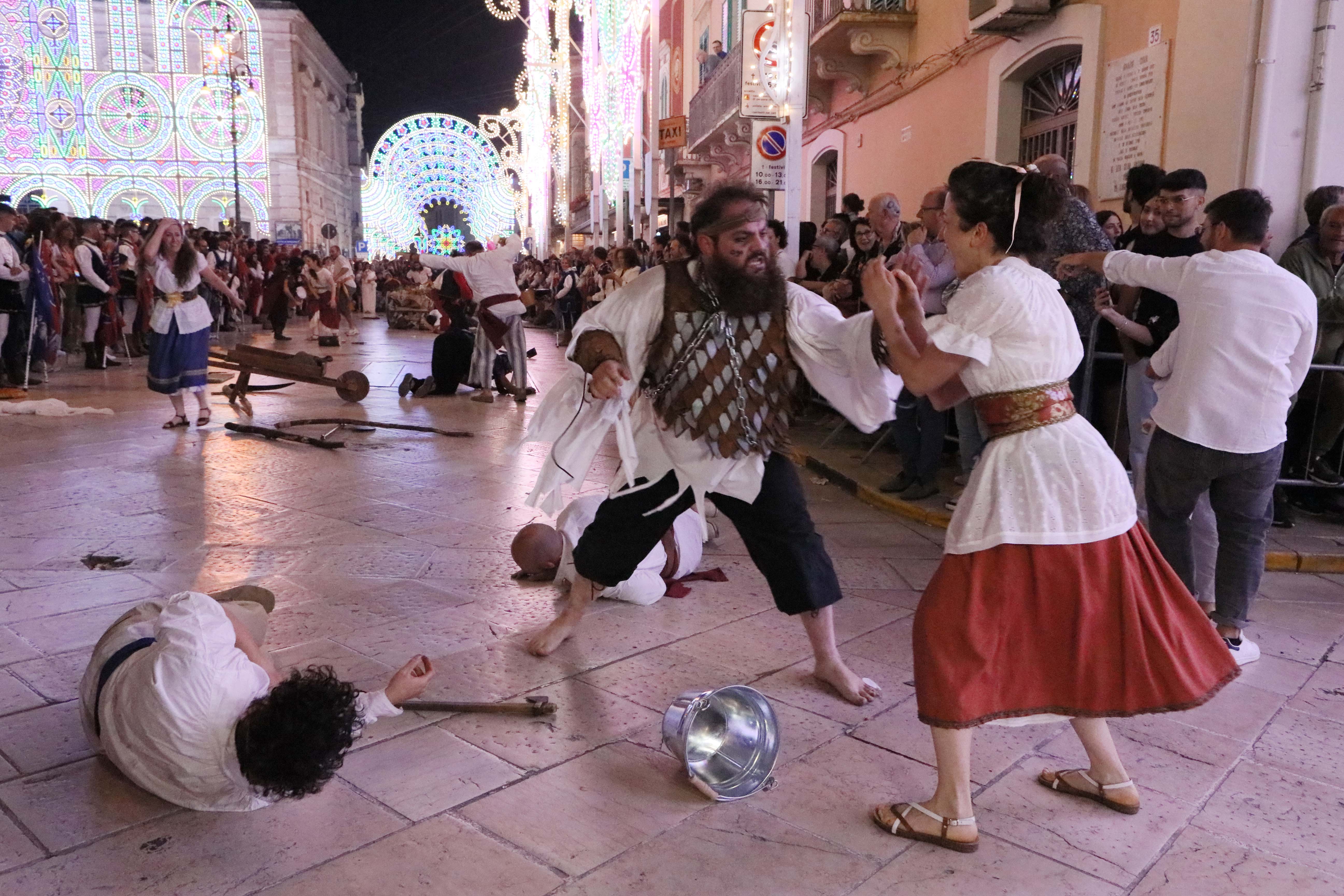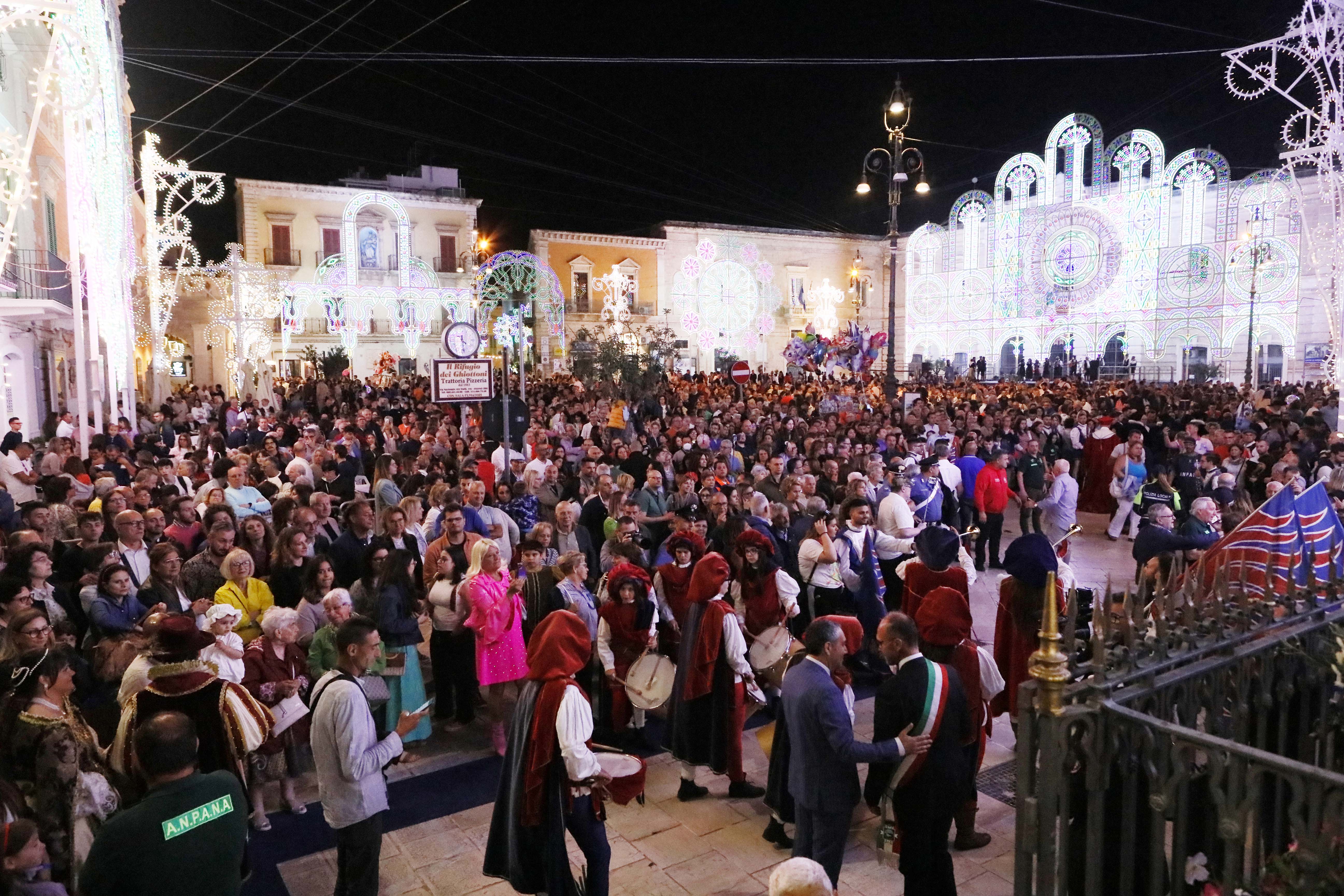Il corteo, dopo scontri fra turchi e fasanesi, balli e costumi pittoreschi, è giunto infine in Piazza Ciaia, dove si è tenuto il tradizionale rito della Consegna della Spada e delle Chiavi della città ai SS. Patroni.