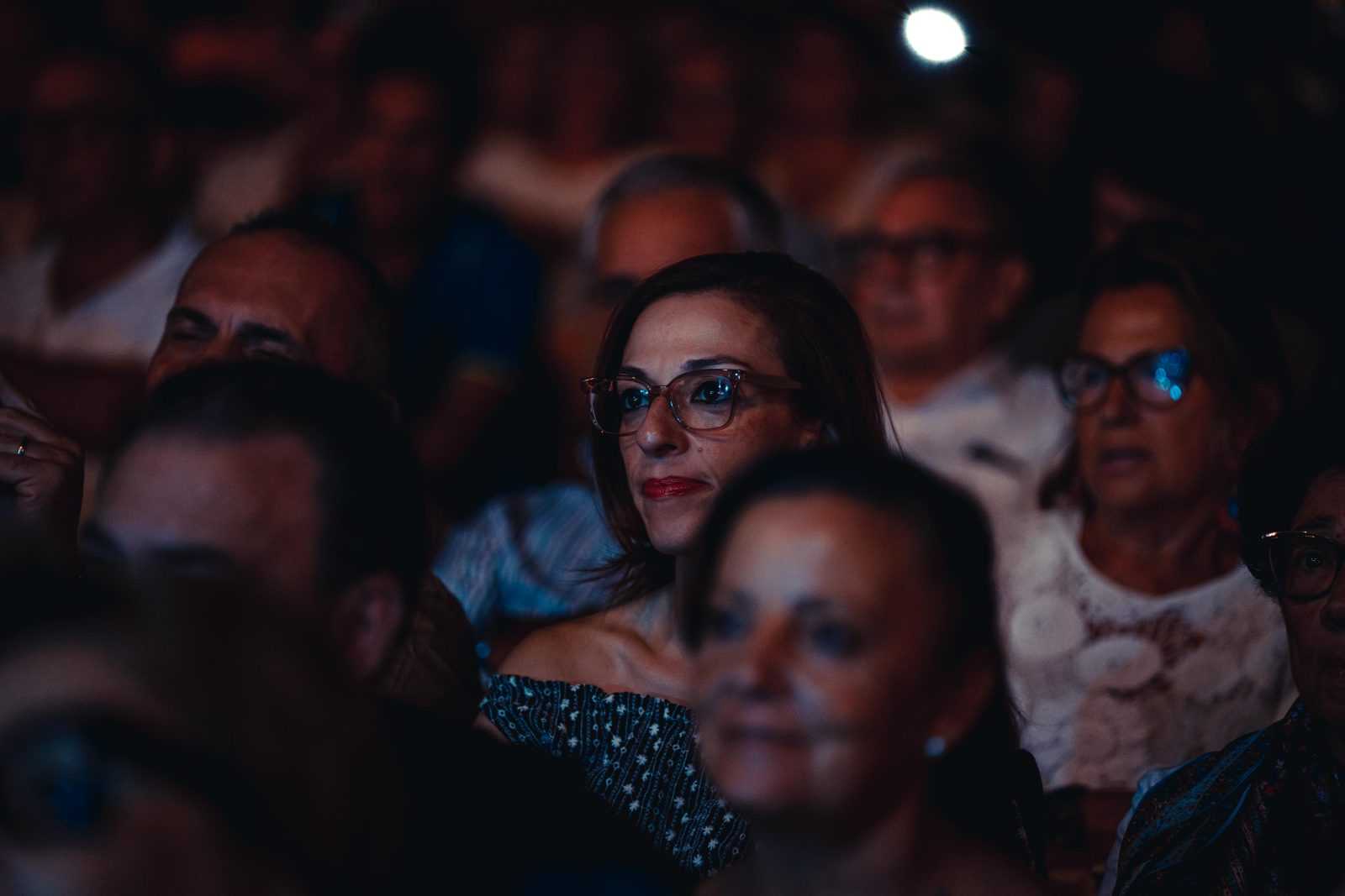 Una voce, quella di Leali, che ricorda il soul e il blues americano, come il suo timbro ha evidenziato nell’esecuzione del medley omaggio a James Brown con Papa’s Got a Brand New Bag, I Got You e It’s a Man’s Man’s Man’s World. E poi l’indimenticabile canzone “denuncia” Angeli Negri, Io Camminerò e poi la cover del bellissimo pezzo country di Bradley Cooper e Lady Gaga, Shallow, cantato per l’occasione con la moglie Germana Schena, che ha inoltre regalato al pubblico le sue versioni di Sweet Dreams e Rolling in The Deep.