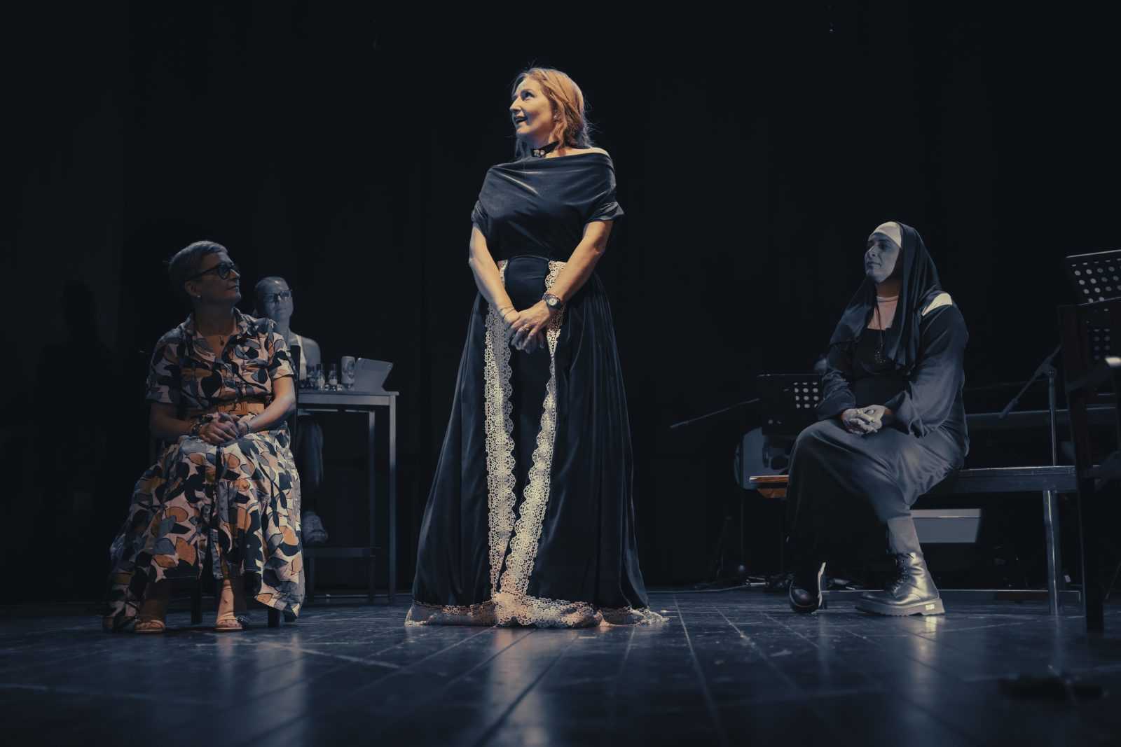 C’è Filomena, la suora volgare che viene percepita come possessa dal demonio, lei che ha avuto la sfortuna di non diventare ballerina. Ma anche la manager spietata, simbolo del capitalismo più aggressivo, che ha trovato il modo di eliminare gli esuberi. Ed ancora la vecchia amica al telefonino, in un dialogo intriso di pettegolezzi, noie e rapporti superficiali. C’è poi una poetessa che mescola il dolore alla dolcezza dei versi, racconta l’ipocrisia del mondo che la circonda, e la donna che aspetta qualcosa – o qualcuno -, un’attesa che la logora e la porta all’ansia e alla prigione, prima verbale e poi fisica. Infine una donna che, a partire da un singolo ombrello, fa partire un flusso di coscienza su come degli oggetti possano evocare dei ricordi andati.