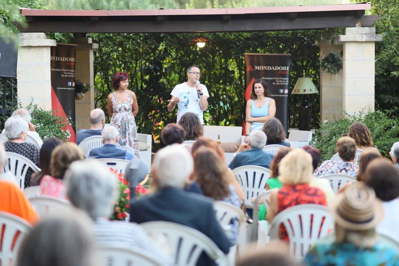 FASANO – Con il romanzo Le mogli hanno sempre ragione, edito Mondadori, dello scrittore e conduttore radiofonico Luca Bianchini, si è aperta ufficialmente ieri sera (30 giugno), presso l’affascinante Villa Falcolini a Selva di Fasano, la seconda edizione della rassegna letteraria “LibriAmo…tra gli ulivi!”, promossa dall’imprenditrice fasanese Laura De Mola e organizzata dal locale Mondadori Point. A intervistare lo scrittore torinese la giornalista Manuela Lenoci.
