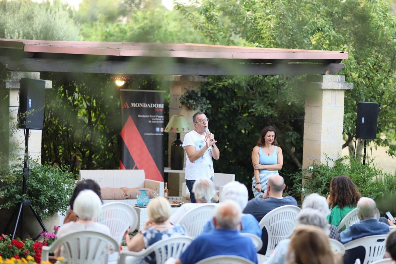 Ad aprire la serata i saluti e i ringraziamenti di rito da parte di Laura De Mola, che ha inaugurato la seconda edizione della rassegna nella novità di Villa Falcolini, un luogo ameno dove la padrona di casa, Rosa Catania, ha accolto gli ospiti e ha dedicato, insieme a Laura De Mola, un ricordo a Lorenza L’Abbate. La parola è poi passata alla giornalista Lenoci che ha voluto fare qualche domanda a Bianchini, scrittore che torna nella sua amata Polignano a Mare per ambientare il primo giallo della sua narrativa. «Adoro come Luca racconta la nostra regione – afferma la giornalista Lenoci – senza mai scadere nell’offesa». «Della Puglia amo il senso di giustizia per le piccole cose – le fa eco lo scrittore – è la cosa che mi ha sempre affascinato. Dobbiamo infatti voler bene alle culture regionali per come sono, e a me la Puglia sembra proprio una piccola Italia».