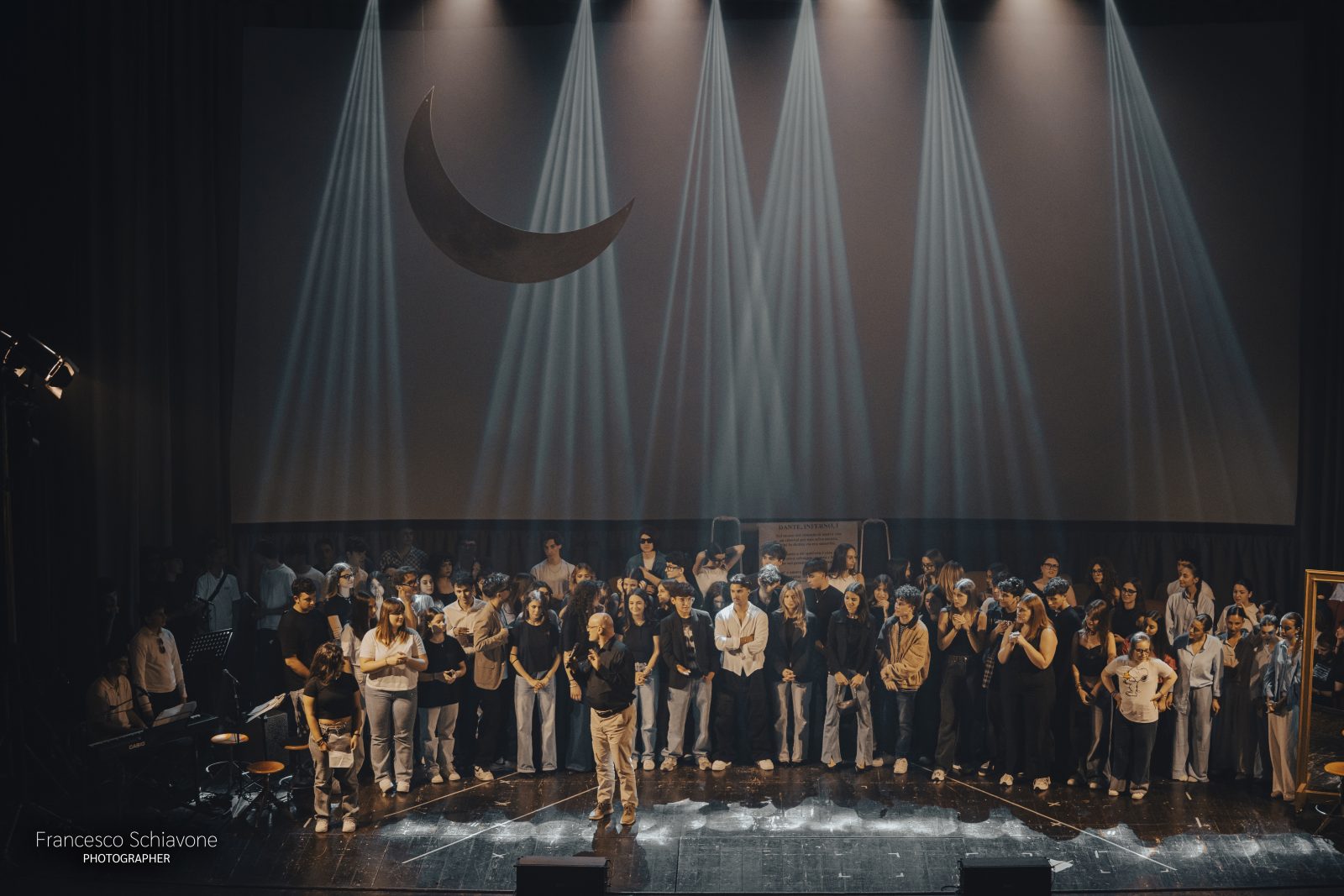 Si è tenuto ieri sera (5 giugno), sul Palco del Teatro Kennedy di Fasano, “Tu dillo alla luna. Un professore. L’appello. 18 vite”, spettacolo conclusivo del progetto “Intrecci di musica e letteratura”, che da vent’anni i docenti dell’IISS “Leonardo da Vinci”, Michele Iacovazzi e Mina Corelli, propongono con stili e temi sempre differenti, eppure sempre coinvolgenti.
