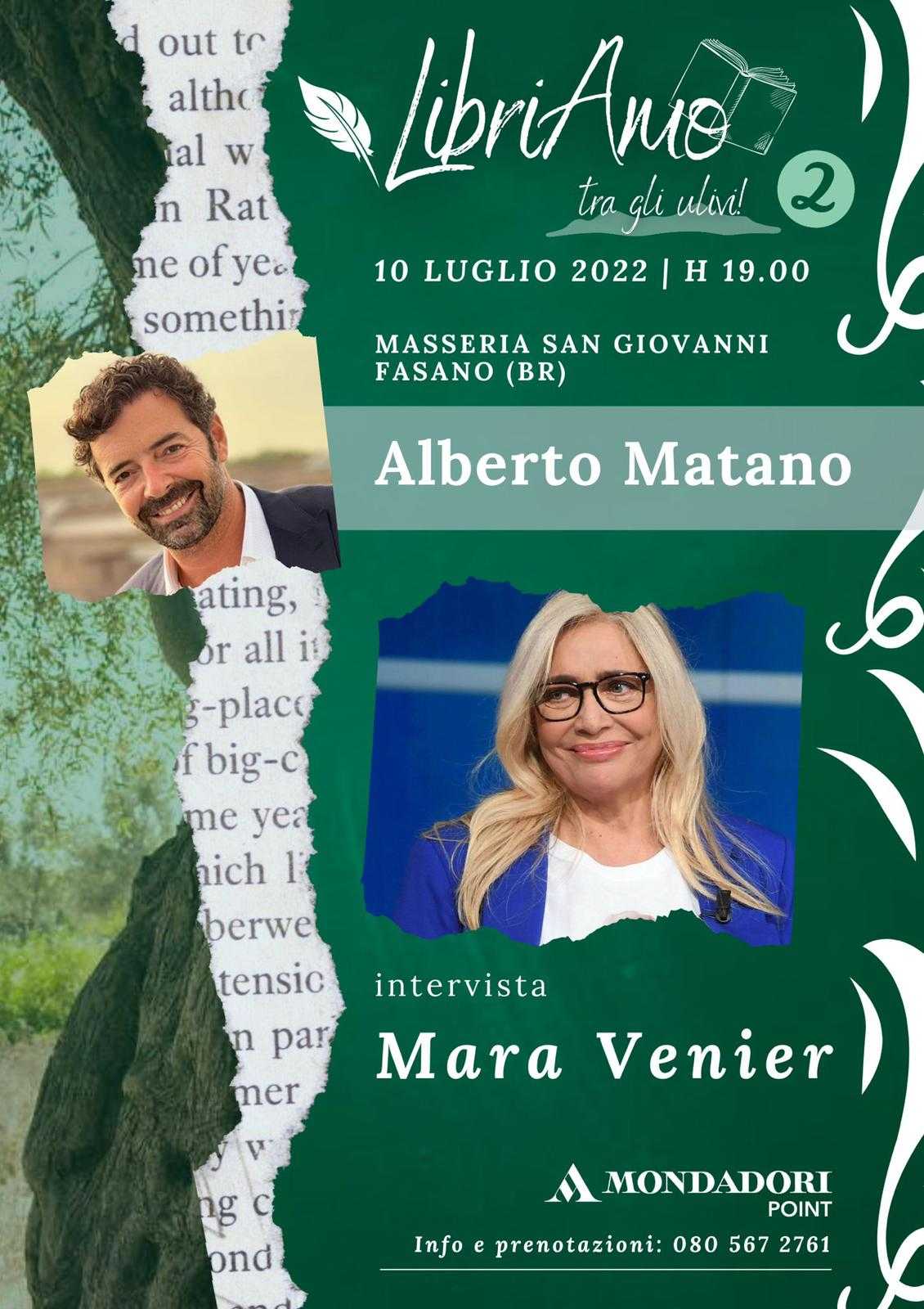 FASANO – Si terrà stasera – domenica 10 luglio -, alle ore 19.00, a Masseria San Giovanni, in c. da Ottava, il quinto appuntamento della rassegna “LibriAmo…tra gli ulivi”, ideata dall’imprenditrice Laura De Mola e organizzata dal Mondadori Point di Fasano. Ospite d’eccezione la conduttrice televisiva Mara Venier che verrà intervistata dal giornalista e suo grande amico Alberto Matano.