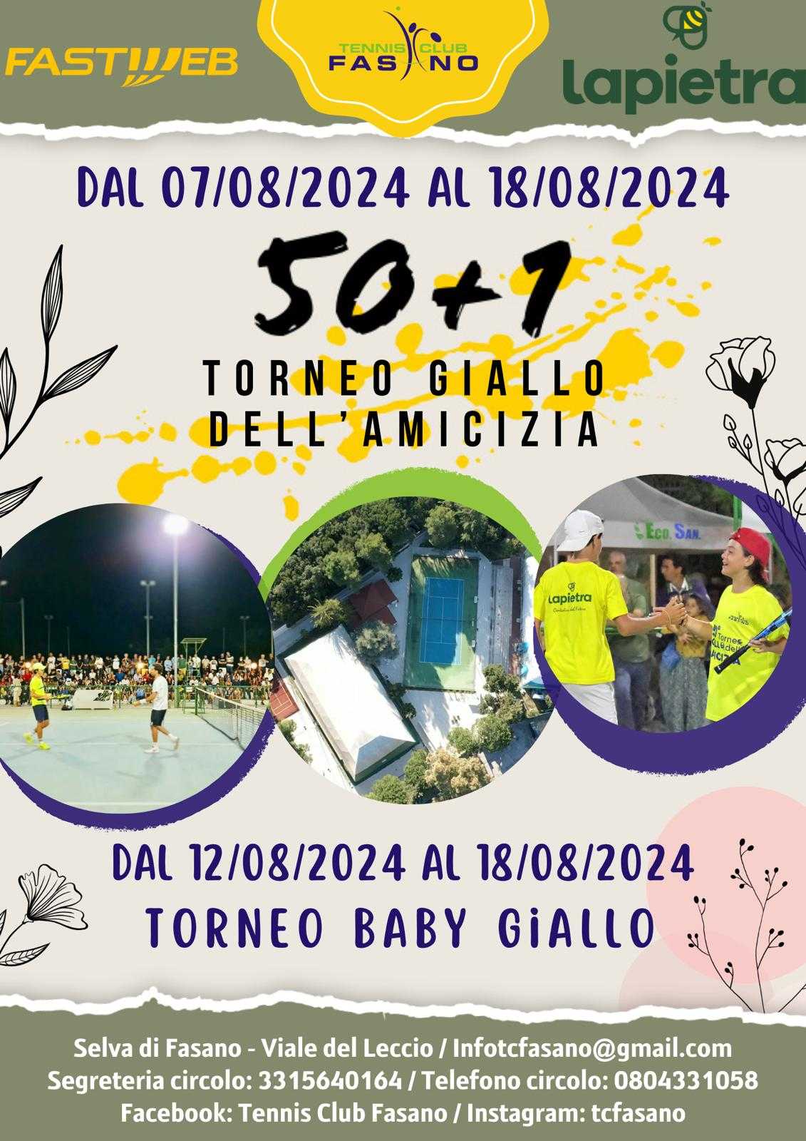 L’esibizione avrà inizio alle ore 21, nei pressi dei campi silvani in Viale Del Leccio, e sarà il preludio di un mese ricco di appuntamenti per il TC Fasano, con la 51^ edizione del Torneo Giallo che prenderà il via il 7 agosto (finale domenica 18 agosto) e il 41° Torneo Nazionale Open a partire da martedì 20 agosto (finale domenica 1 settembre).