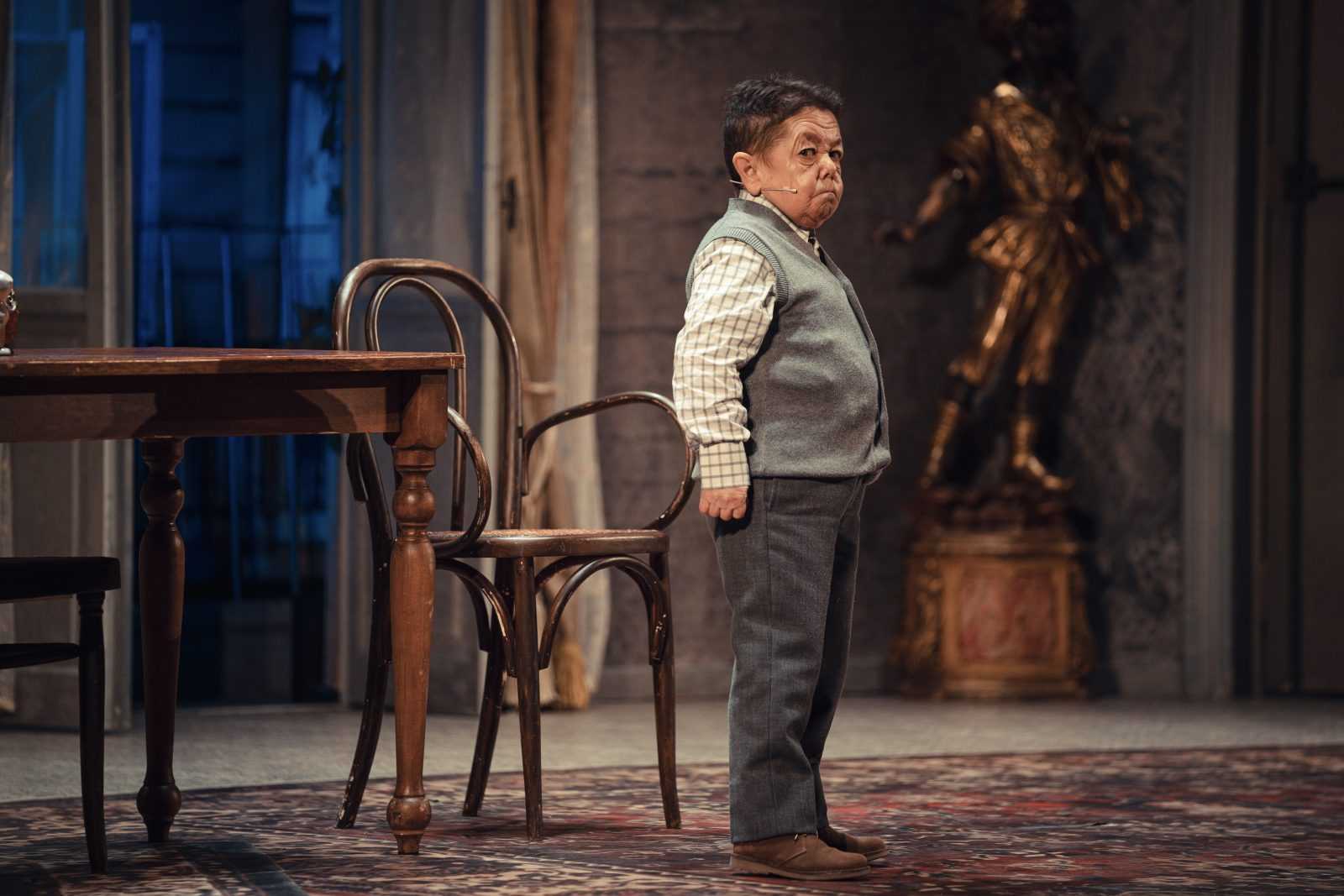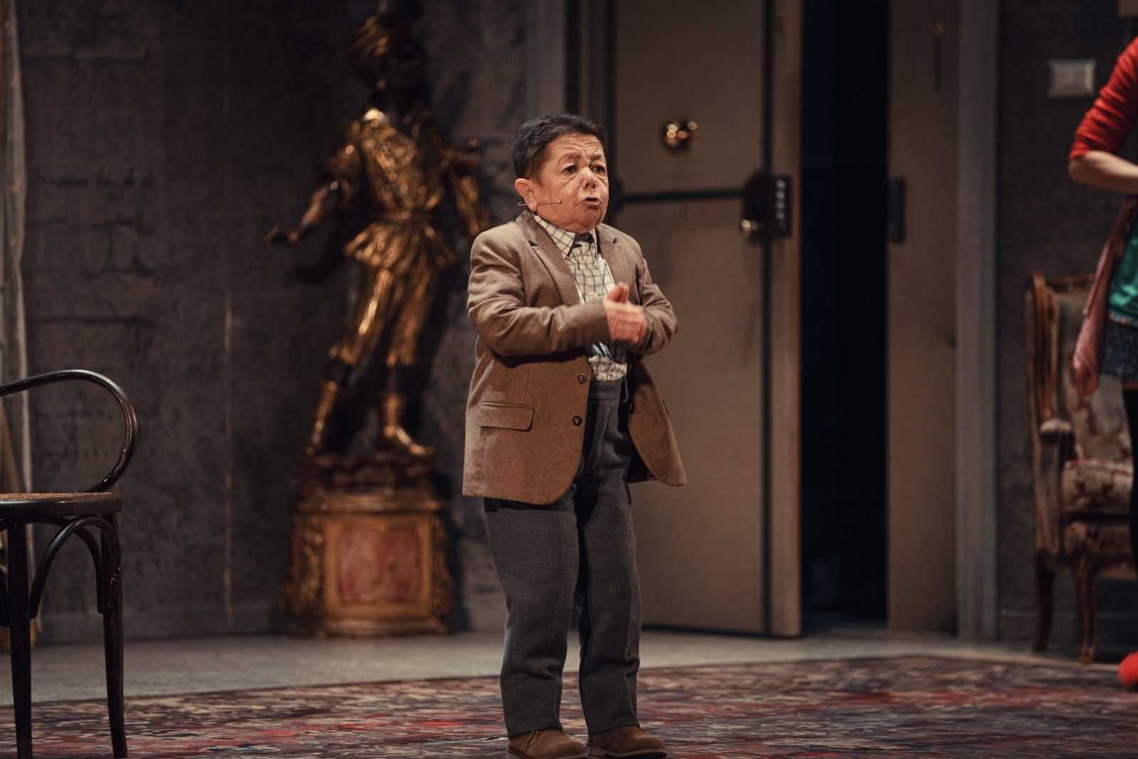 Mattatore indiscusso, abile nel triplice ruolo di attore, regista e autore di un testo che è come un orologio dai perfetti ingranaggi comici.