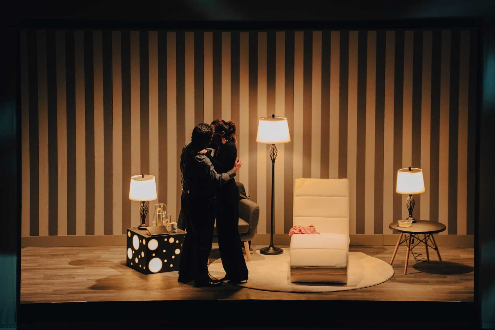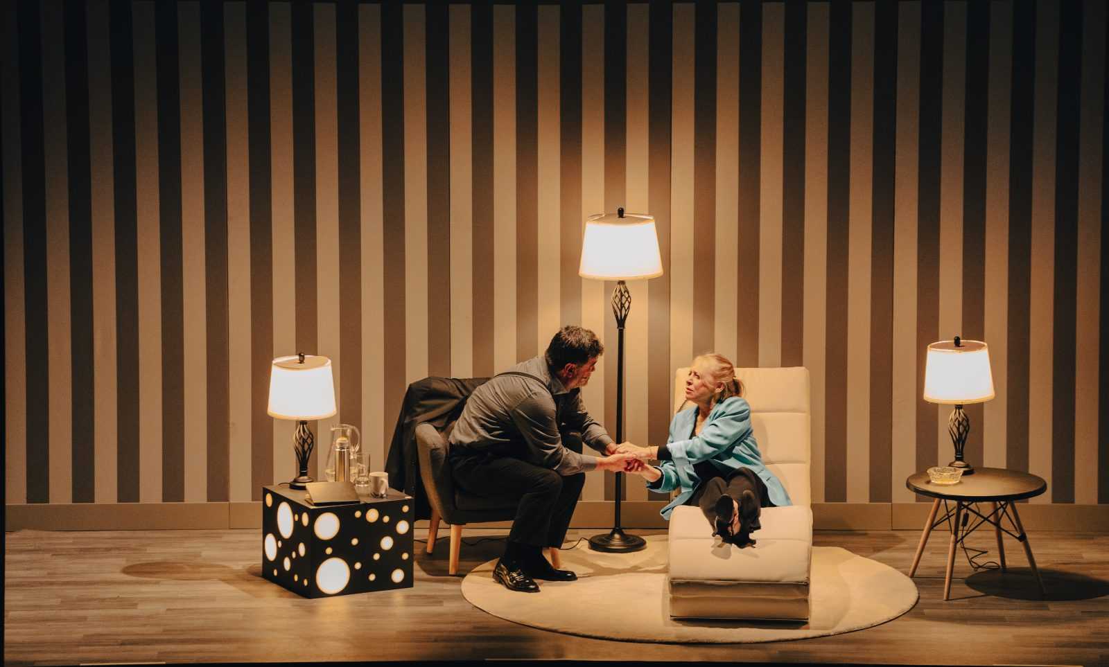 Mayer più volte sviene per improvvisi attacchi di cuore (o semplice mal di vivere), ed è l’espediente per un ripetuto cambio di scena: dal salotto televisivo ci si ritrova in quello del Mayer psicoterapeuta. Protagonisti un diacono omosessuale che presto diventerà prete, una moglie preoccupata per le sorti del marito malato e una donna insoddisfatta dei continui tradimenti del proprio uomo.