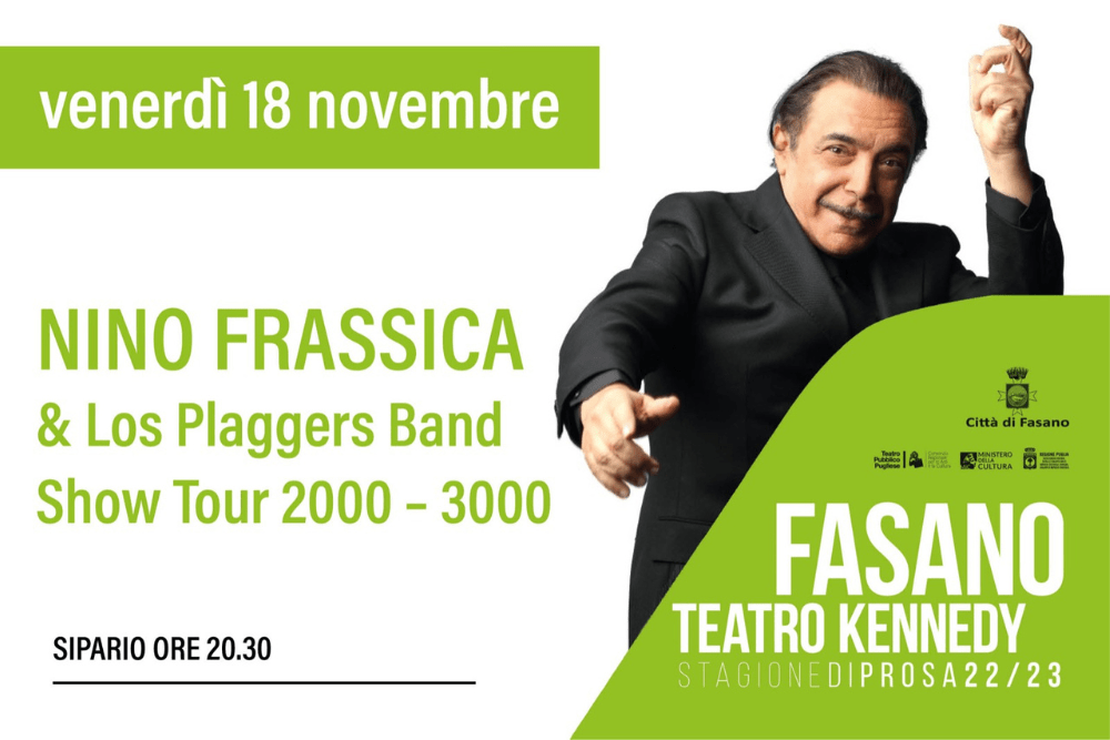 FASANO – Sarà Nino Frassica, accompagnato dalla Los Plaggers Band, il primo a calcare il palco del Teatro Kennedy stasera, venerdì 18 novembre, con lo spettacolo «Nino Frassica & Los Plaggers Band Show Tour 2000 – 3000», per la Stagione Teatrale 2022/2023 del Comune di Fasano in collaborazione con il Teatro Pubblico Pugliese. Un’operazione di memoria musicale con un repertorio di oltre cento brani rivisti e corretti in cui canzoni famosissime, pur mantenendo la propria identità, sono tagliate e ricucite alla maniera di Frassica.