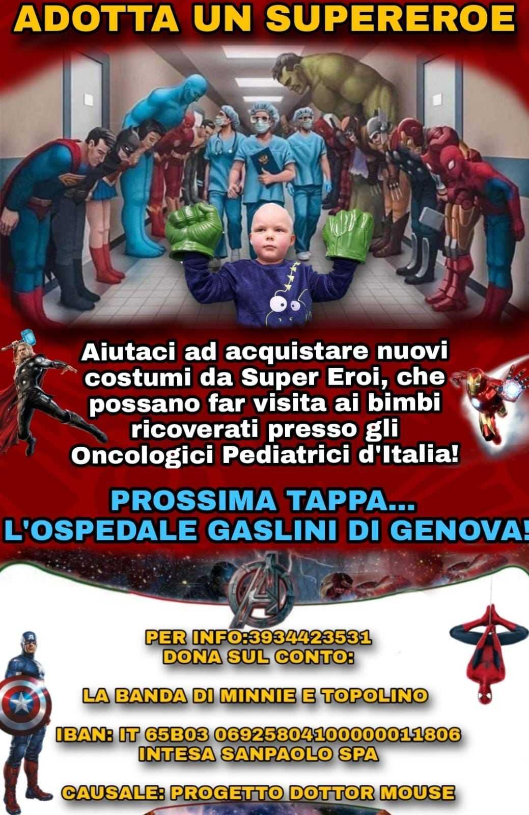 Nell’ambito del progetto è da segnalare l’iniziativa “Adotta un supereroe”, rivolta sia ad aziende che a persone private, che prevede la possibilità di donare un importo in maniera liberale, finalizzato all’acquisto di una mascotte o un cosplay, che verranno utilizzate nelle attività di Clownterapia svolte negli Oncologici Pediatrici di tutta Italia.