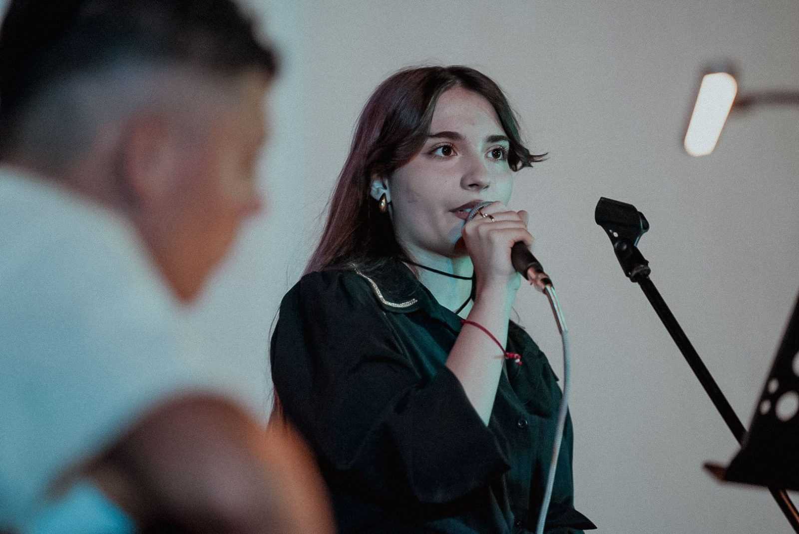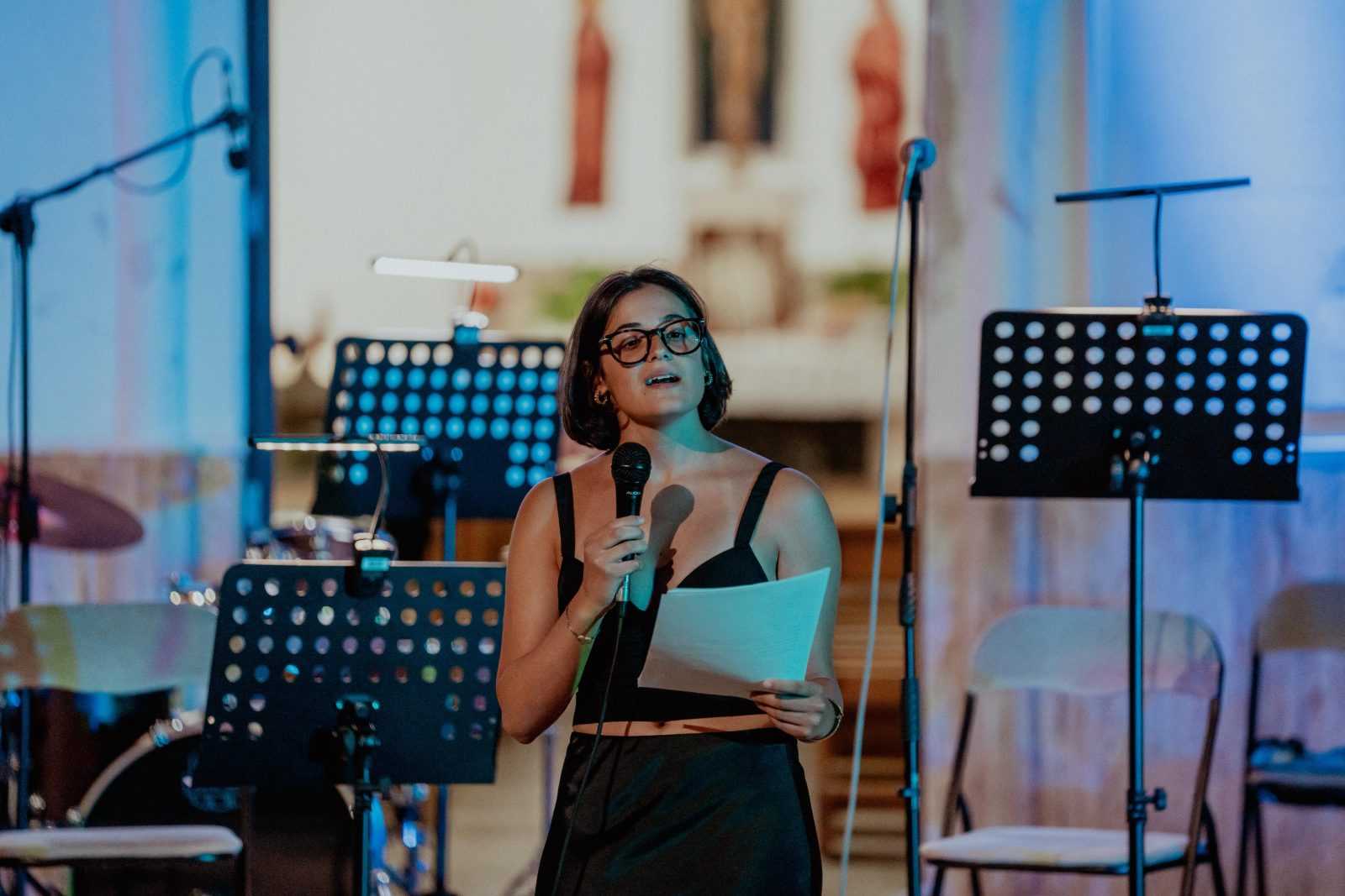 La serata si è aperta con l’interpretazione di Sally di Vasco Rossi, affidata alla voce limpida di Angelica Santoro, che ha dato il via a un viaggio musicale tra vari generi.