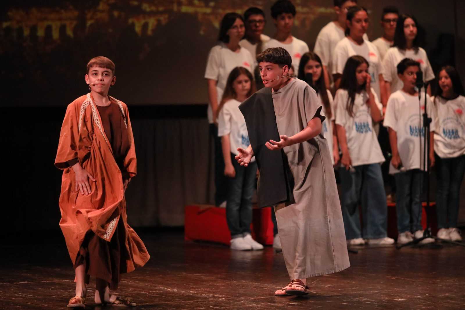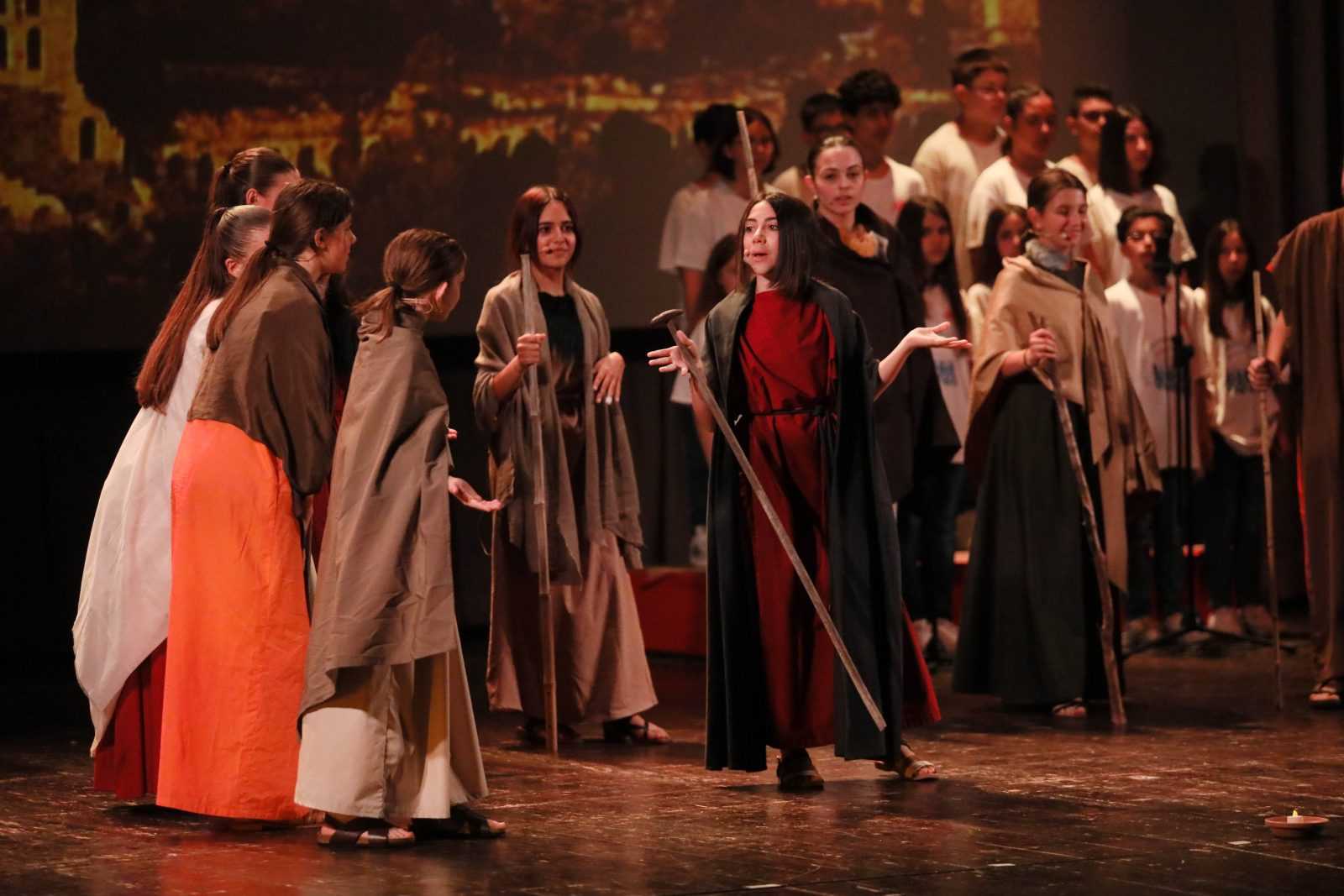 La serata è stata arricchita da numeri musicali eseguiti dall’orchestra Galilei e dal coro, con canzoni contemporanee adattate ai temi trattati e coreografie sinergiche. L’inclusione della lingua dei segni ha rappresentato un ulteriore invito alla riflessione e all’inclusione. Maestosi pannelli scenografici e immagini proiettate sullo sfondo hanno suggellato i momenti più significativi del musical.