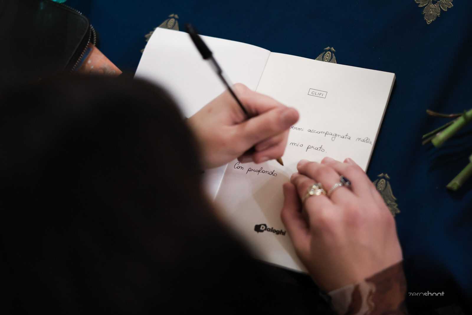 “Cronache del corpo stanco”, la prima letta, è la poesia manifesto di “Memorie di un prato”, come ha spiegato Roberta durante il dialogo con la moderatrice: «Un corpo stanco che cerca di ritrovarsi attraverso le emozioni. Oggi ci viene chiesto di essere sempre performanti, ma questo non è possibile proprio per quella che è la nostra natura. La mia opera è un atto di resistenza a rivendicare il diritto di essere fragili e vulnerabili, di essere, appunto, umani».