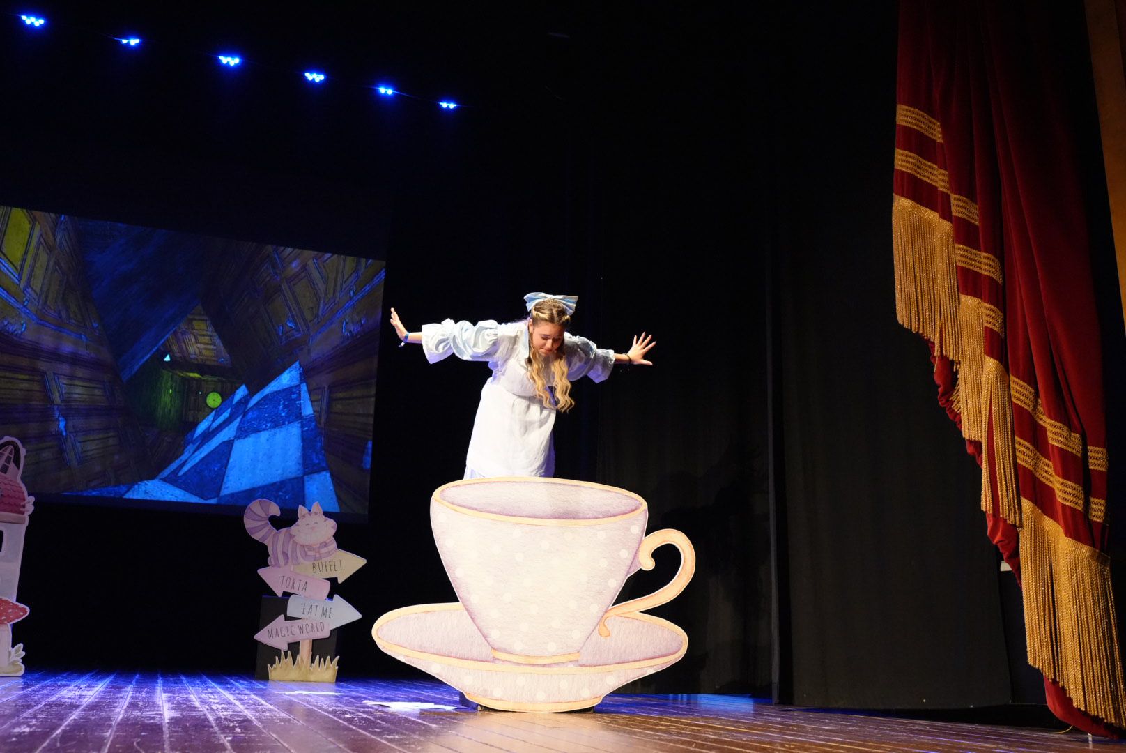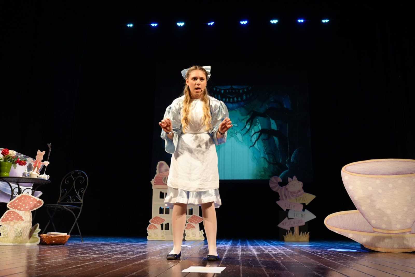 Lo spettacolo, andato in scena con due repliche fra la mattina e la sera di ieri, rientra nella “Rassegna Kids”, iniziata con “Pollicino Show”, e ha visto il giovanissimo pubblico del Sociale stupirsi di fronte alla rappresentazione della giovanissima Ilenia Sibilio, allieva del corso di formazione attoriale FuTUra tenuto dall’associazione, che ha dato anima e corpo alla protagonista di uno dei romanzi più iconici di Lewis Carroll, “Le avventure di Alice nel Paese delle Meraviglie”.