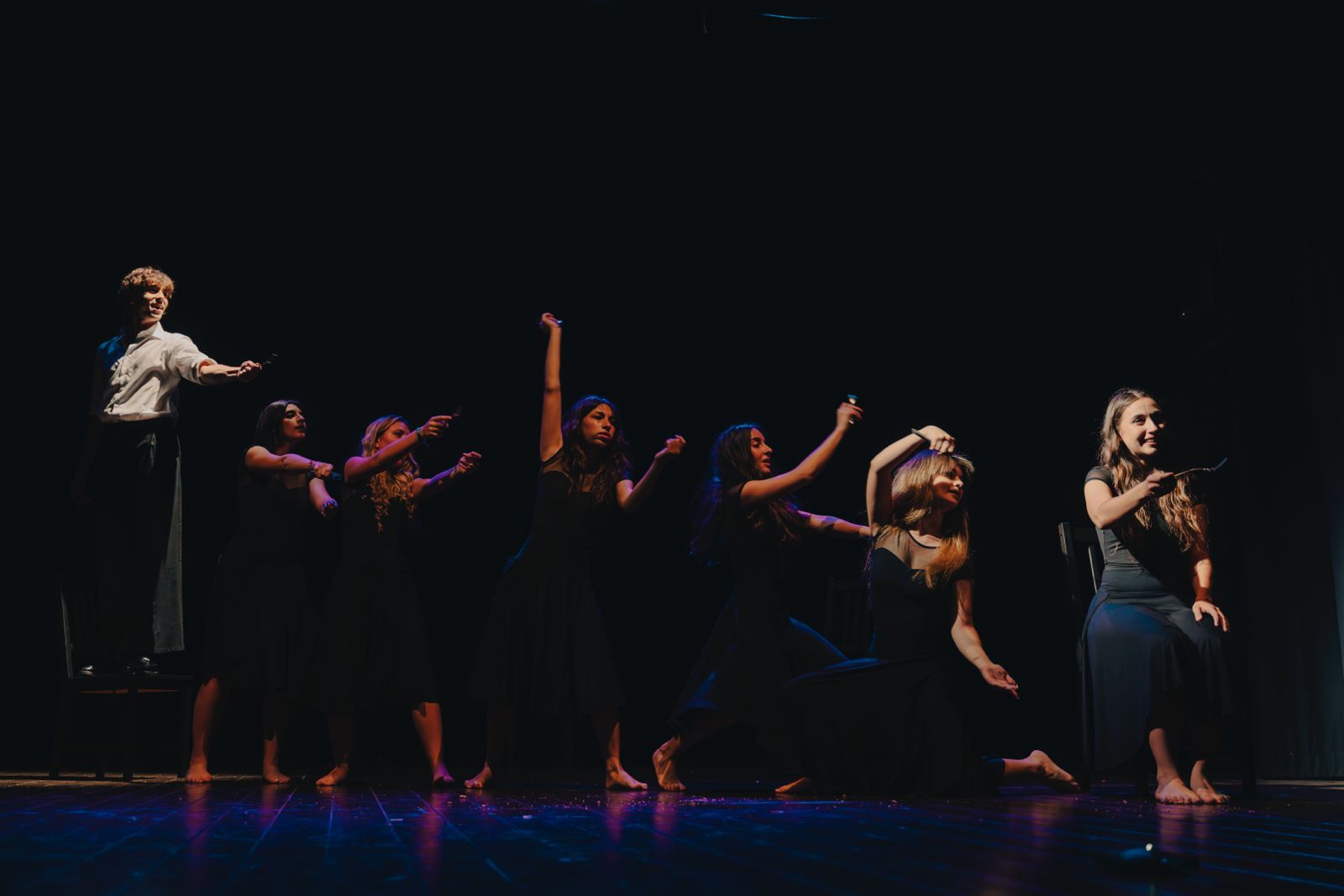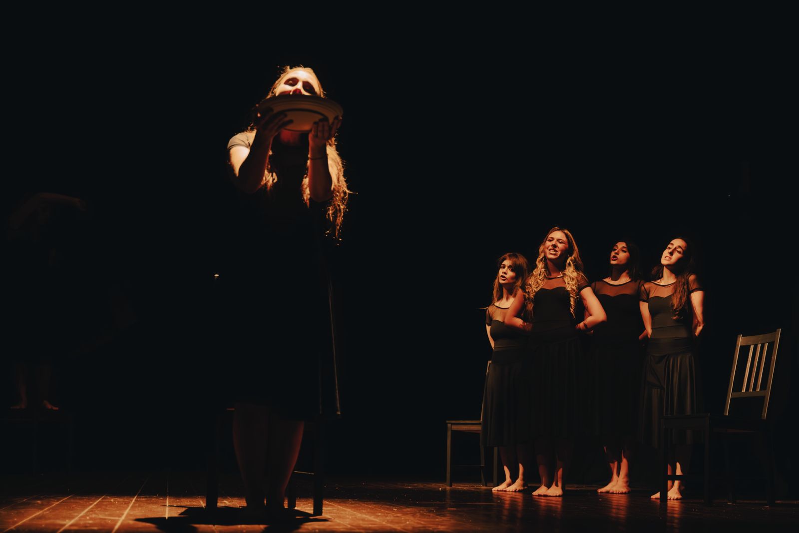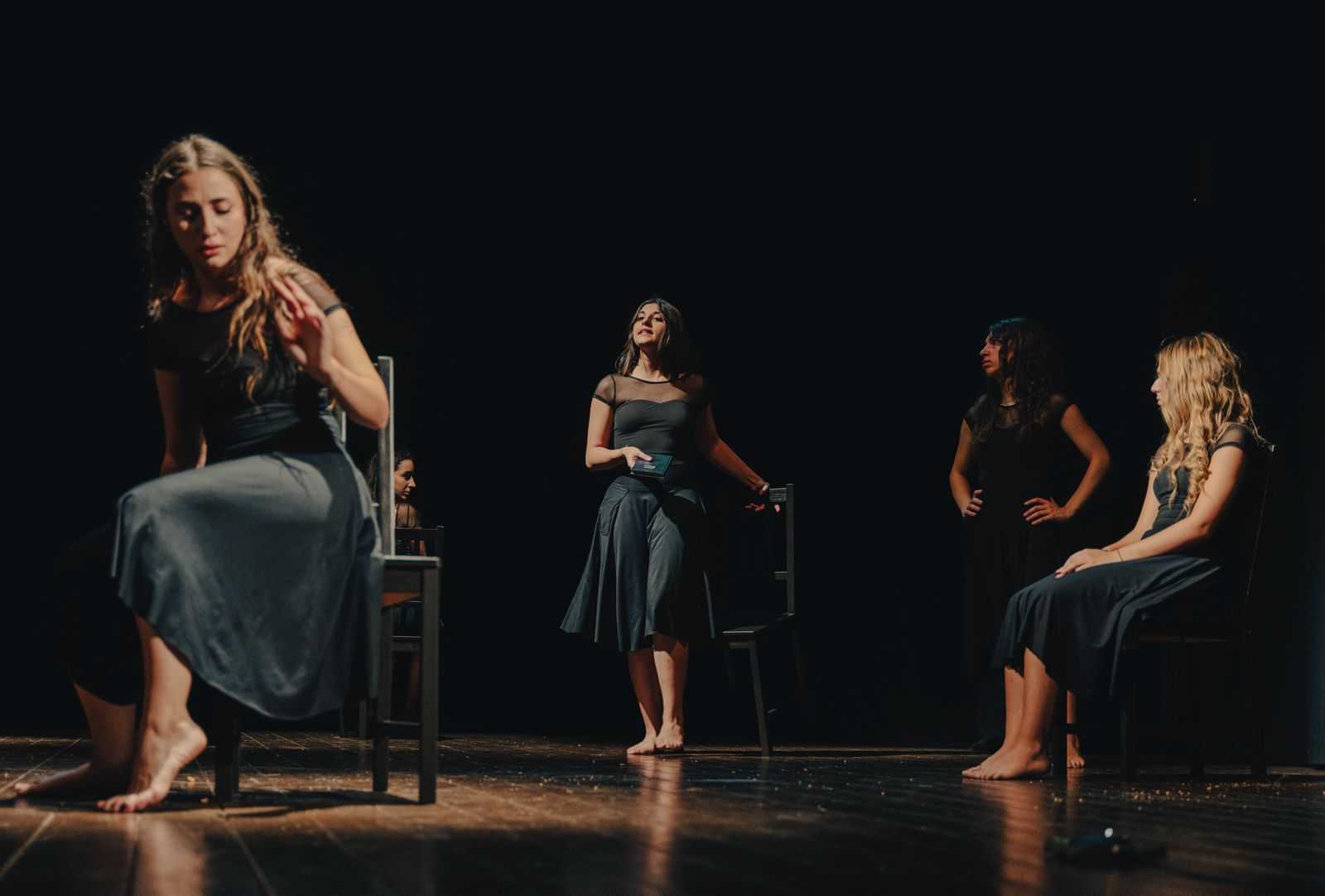 Spazio all’intensa prova attoriale delle sei allieve del corso, con una prova dinamica che ha visto le ragazze interpretare figure come l’Ignota del Come tu mi vuoi di Pirandello, Nora della Casa di Bambola di Ibsen, la Maria Maddalena e la Clitemnestra di Yourcenar, senza dimenticare la Rosalina di After Juliet di MacDonald e Blanche da Un tram che si chiama desiderio di Williams.
