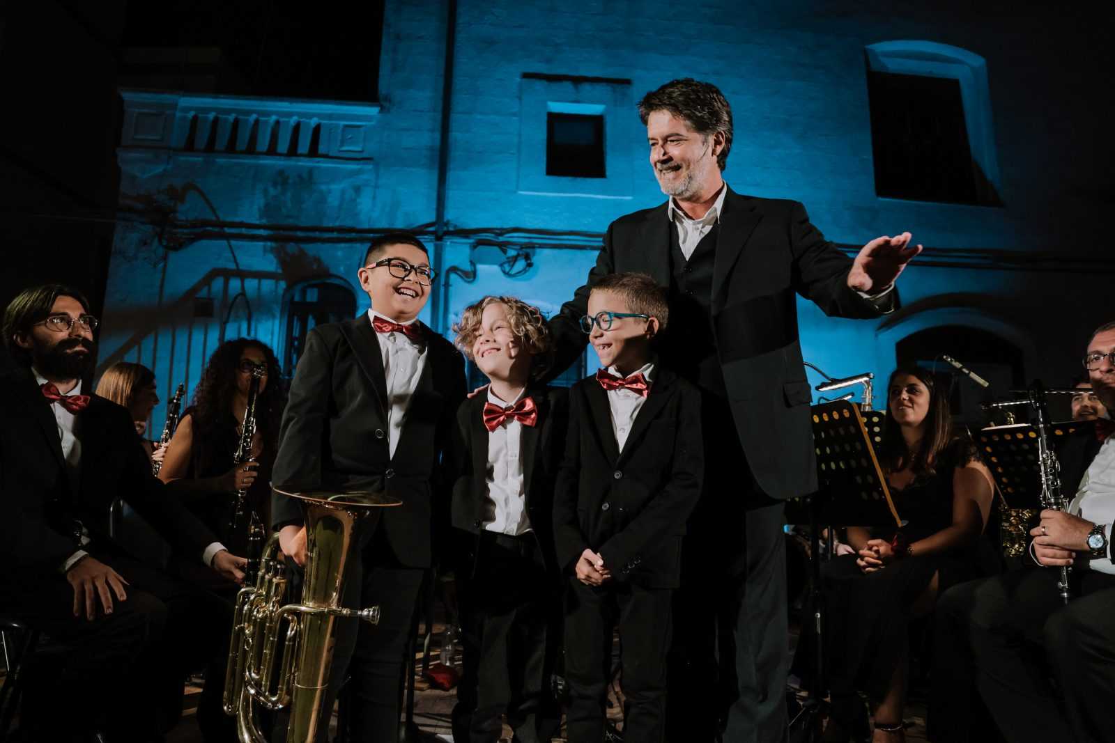 Protagonista della serata, la Banda Città di Fasano magistralmente diretta dal M° Silvestro Sabatelli, accompagnata dalle splendide voci di Laura Legrottaglie e Maristella Curri, i quali hanno offerto al pubblico brani che hanno segnato l’evoluzione della banda, dalla musica leggera a quella pop, dalla tradizione al funky e soul.