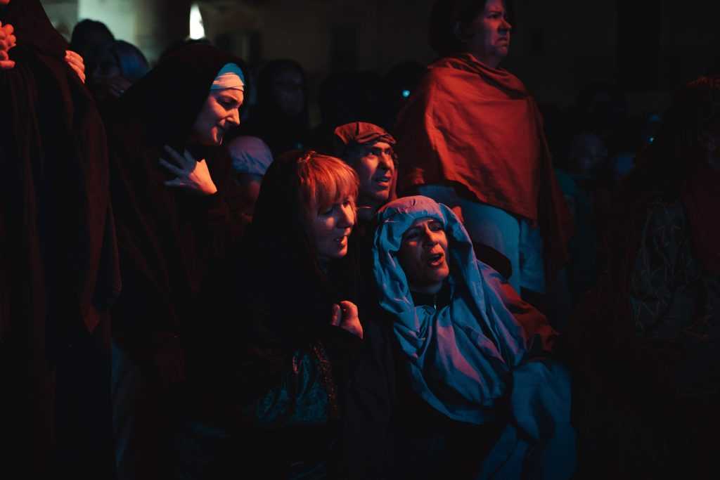 Per le vie di Fasano, da Piazza Ciaia a Via San Francesco, il rito delle quattordici stazioni della Via Dolorosa si è ripetuto grazie all’iniziativa di oltre cinquanta figuranti, che hanno emozionato il pubblico presente ai lati delle vie. A far da cornice l’esibizione dei “Timpanisti Fajanensis” e la splendida narrazione dei più piccoli membri dell’associazione, che hanno raccontato il percorso della Quaresima, dal significato della Pasqua fino alla Resurrezione di Cristo.