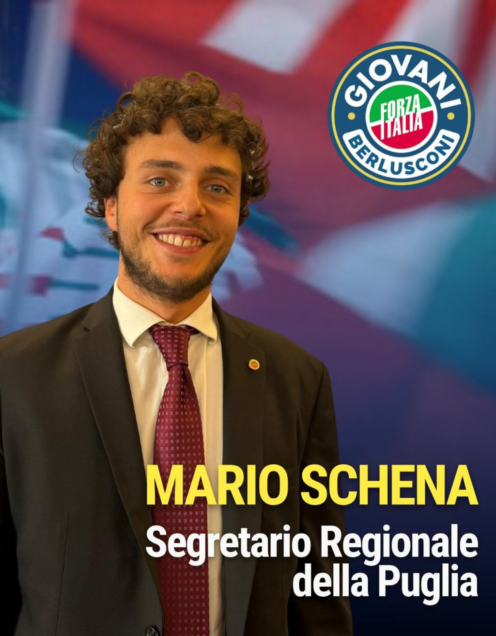 FASANO – Alla vigilia della prima edizione di “Puglia Azzurra”, la kermesse estiva organizzata da Forza Italia Giovani, in programma il prossimo sabato 29 giugno nella frazione di San Vito a Polignano a Mare, viene riconfermato l’incarico di Segretario regionale al fasanese Mario Schena.