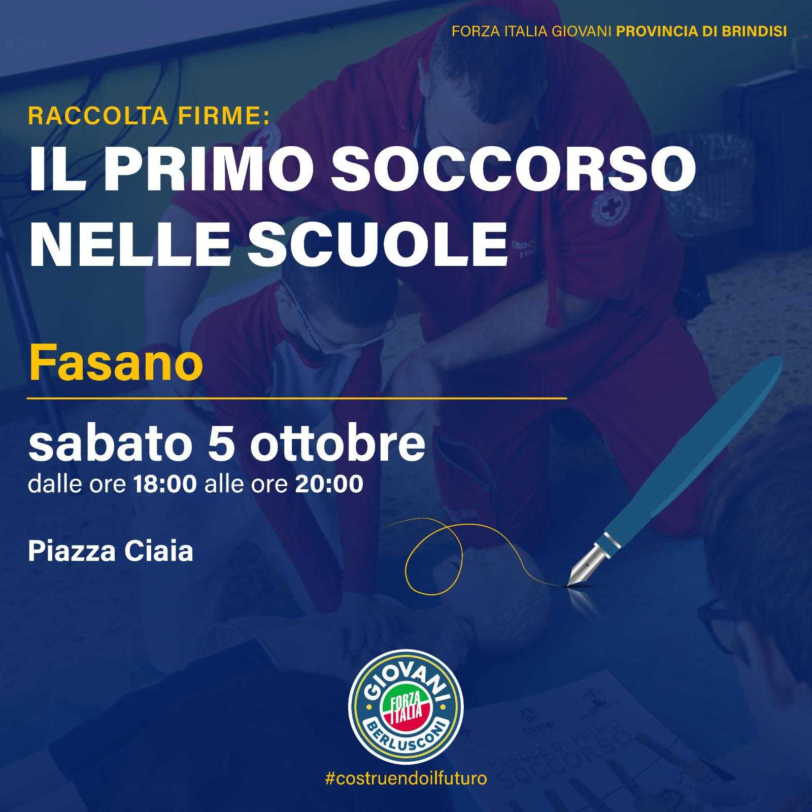 BARI – Rendere obbligatori i corsi di primo soccorso nelle scuole secondarie di primo e secondo grado: è questo l’obiettivo della proposta di legge, recentemente depositata alla Camera e presentata dall’on Stefano Benigni, al centro dell’iniziativa di raccolta firme presentata oggi dal movimento giovanile di Forza Italia Puglia.