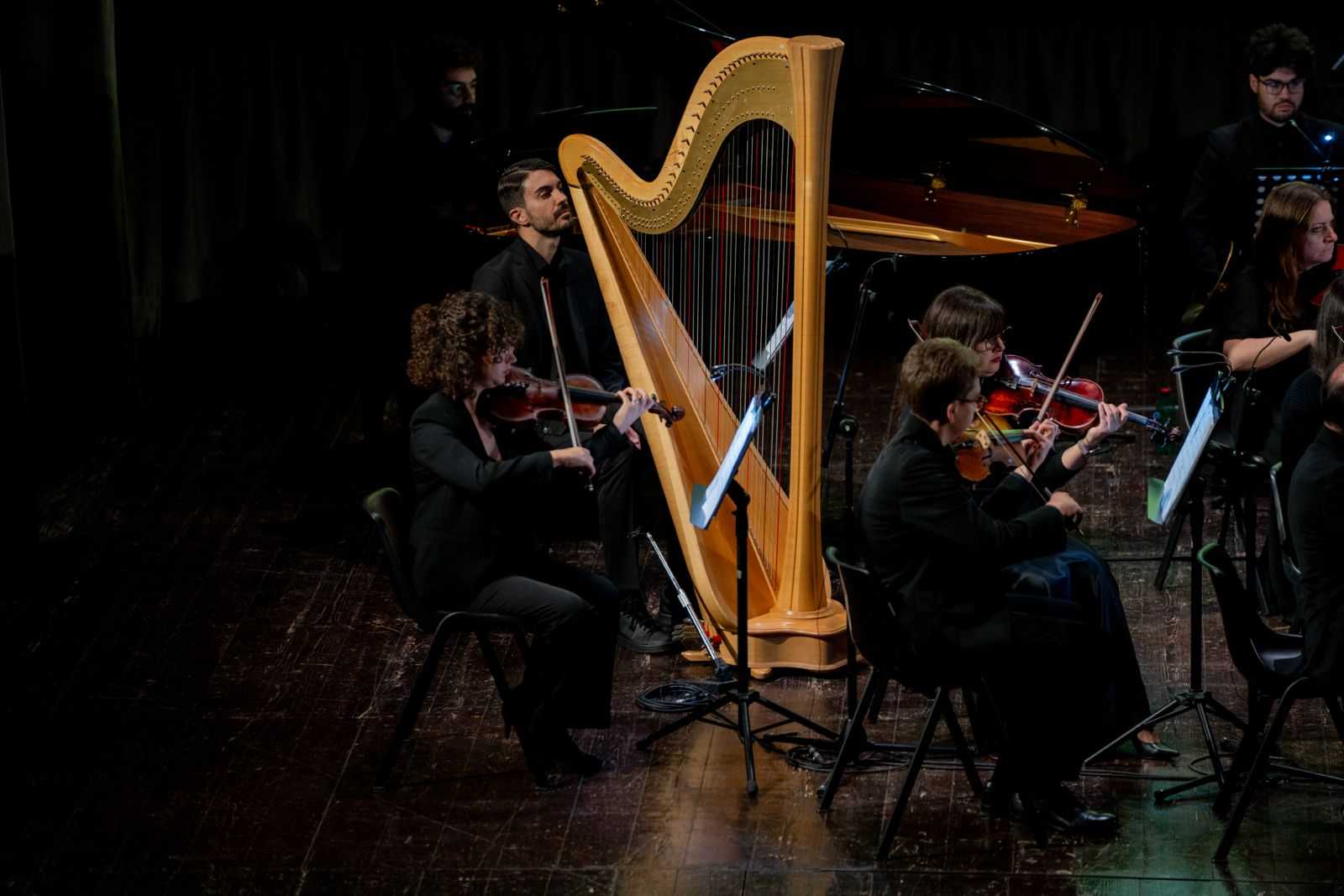 Sul palco, l’imponente Orchestra Sinfonica del Conservatorio “Nino Rota” di Monopoli.