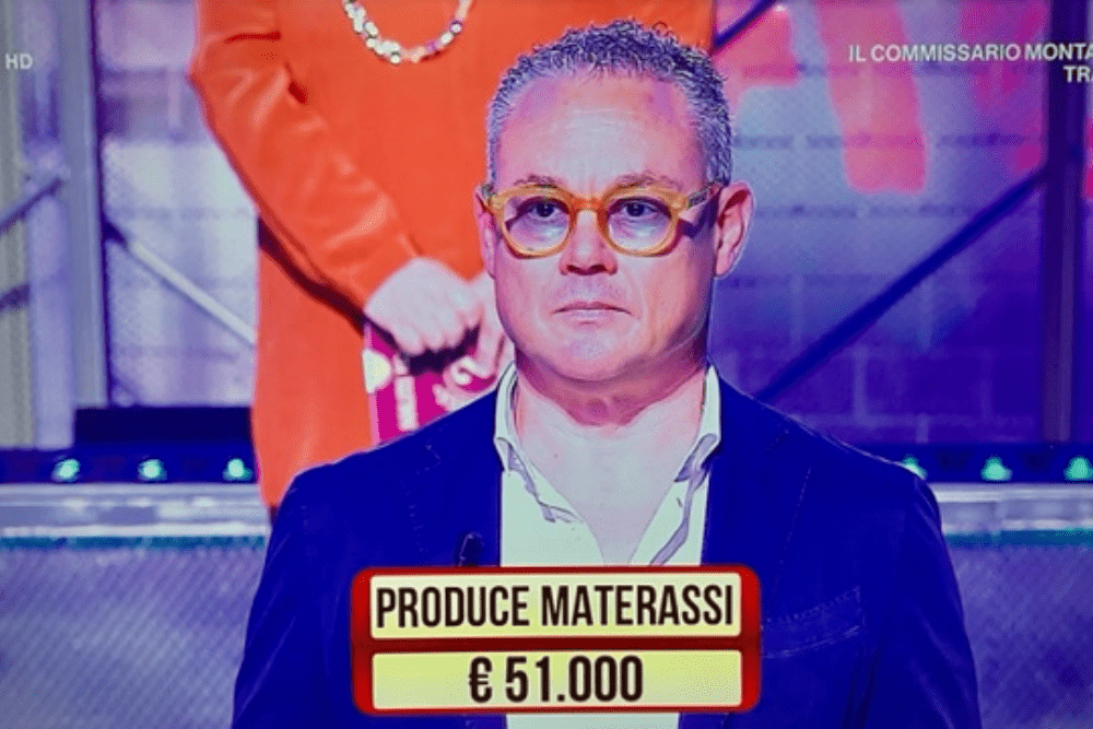 Tra i numerosi “ignoti” posti dinanzi ai concorrenti Nico e Lucrezia, c’era Alberto Cardone, proprietario dell’azienda fasanese Albasana. L’identità del nostro concittadino, l’ignoto numero 8, aveva il valore di €33.000,00 e, come indovinato dagli sfidanti, Alberto produce materassi.