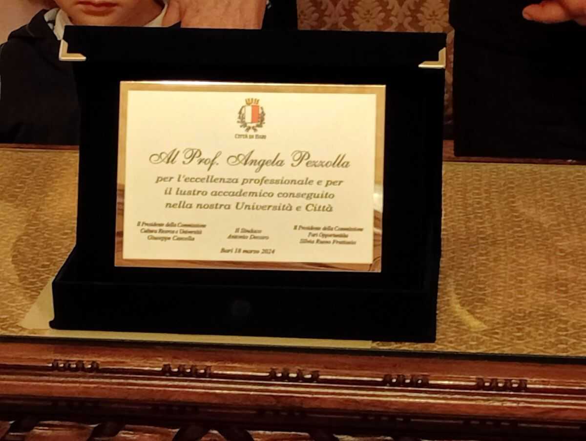 Lo scorso 18 marzo, presso il maestoso Palazzo di Città, Angela Pezzolla è stata onorata per la sua straordinaria carriera come primaria del reparto di Chirurgia generale “Marinaccio” del Policlinico di Bari. La sua brillantezza professionale e l’impareggiabile contributo all’ambiente accademico e alla comunità hanno suscitato ammirazione e gratitudine da parte di tutti coloro che hanno avuto il privilegio di conoscerla.