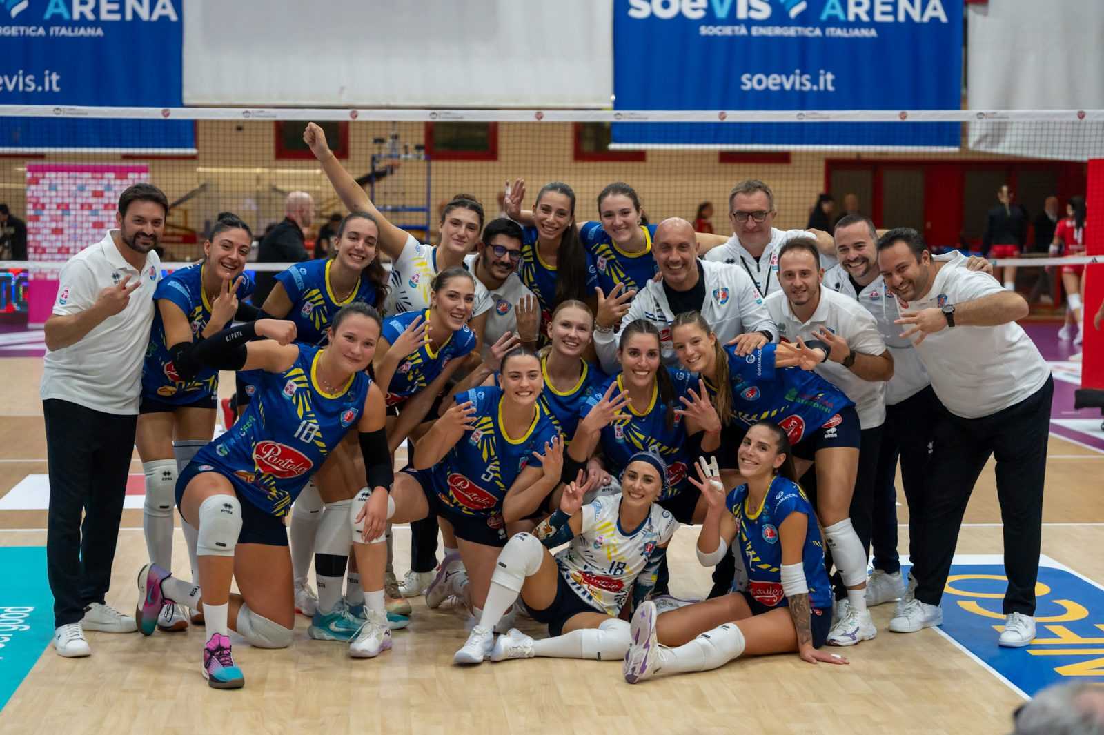 “Siamo molto contenti per questi due primi punti storici conquistati – dichiara coach Totero – Abbiamo avuto qualche difficoltà nei primi due set, che secondo me si potevano chiudere a nostro vantaggio, visti i punti a nostro vantaggio che potevamo amministrare meglio. Abbiamo delle dinamiche e delle rotazioni da migliorare perché ci conosciamo ancora poco e abbiamo bisogno di lavorare tanto. Le ragazze non hanno mai mollato e vincere ci aiuta molto mentalmente. La nostra pecca è ancora quella di amministrare meglio i vantaggi che realizziamo durante le gare. Oggi però abbiamo dato qualcosa in più dopo Brescia e questo è un ottimo segnale di crescita”.