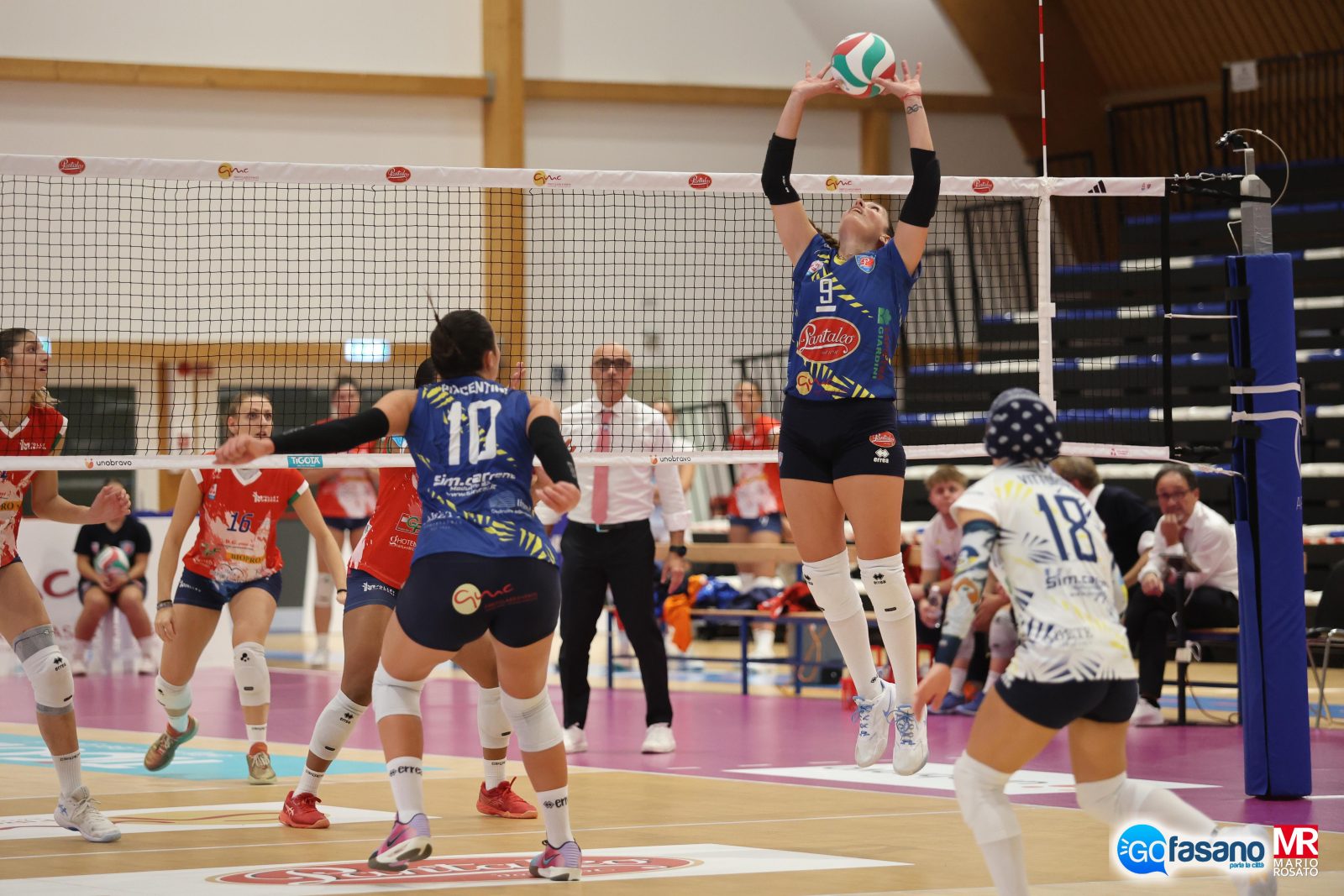 In cronaca una partenza sprint per le fasanesi che piazzano subito un break importante (6-1) nei confronti delle emiliane di coach Biagio Marone che chiama il primo time out. Il Modena prova la reazione, ma è sempre la Olio Pantaleo Fasano a dominare l’incontro con un ulteriore break che porta il set sul + 12 (19-7). Le ospiti reagiscono piazzando un contro break di 5-0 che accorcia le distanze tra le due formazioni. La Olio Pantaleo Fasano però riprende subito la marcia vincente e con un altro break da manuale piazza la zampata vincente che chiude il primo set a proprio favore (25-15). Nel secondo gioco inizio alquanto equilibrata con la Olio Pantaleo Fasano che prova a scappare con efficaci incursioni di Candela Salinas e compagne. Un’ispirata Claudia Provaroni spinge le gialloblù su un rassicurante +7 (21-14) che ipoteca anche il secondo set, nonostante un tentativo di recupero in extremis delle ospiti, ma si va sul 2-0 (25-18). Reazione della Volley Modena nel terzo set che, di fatto, annulla un break iniziale delle fasanesi rimettendo in equilibrio il parziale (11-11). Gara decisamente cambiata, grazie ad un momento di ottima performance dell’emiliane che con una girandola di cambi provano a mettere in difficoltà le padrone di casa. Scatto d’orgoglio delle fasanesi che sul pari (18-18) provano a chiudere il match con un break di + 3, ma la Volley Modena non molla e la gara si fa sempre più entusiasmante con un punto a punto fino allo spunto finale che assegna il set e la partita alla Olio Panteleo Fasano (25-23), nella splendida cornice di festa sugli spalti dei circa 900 spettatori presenti per i primi 3 punti della Olio Pantaleo Fasano.
