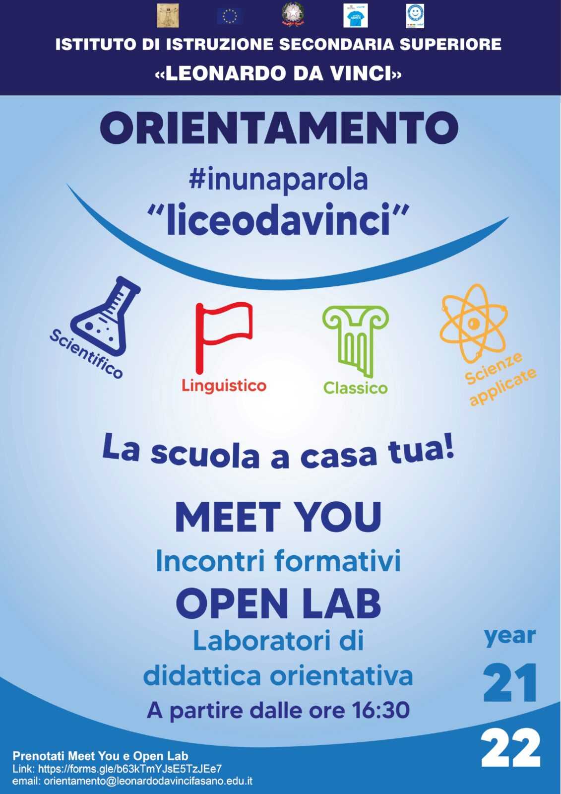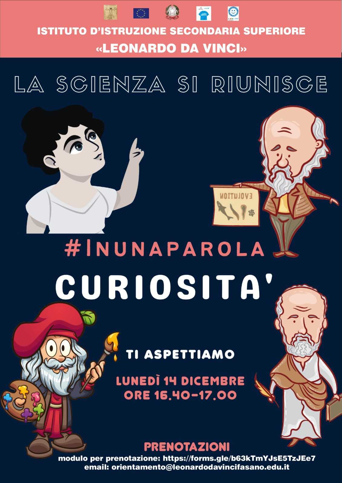 - 16.30 – 16.40: “La scuola a casa tua” – Informazioni generali sul liceo “Leonardo da Vinci”