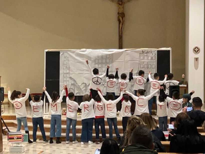 Tanta l’emozione provata e trasmessa dai bambini alle famiglie che, in una chiesa stracolma ma silenziosa, hanno partecipato allo spettacolo con tangibile commozione che trapelava dai loro sguardi.