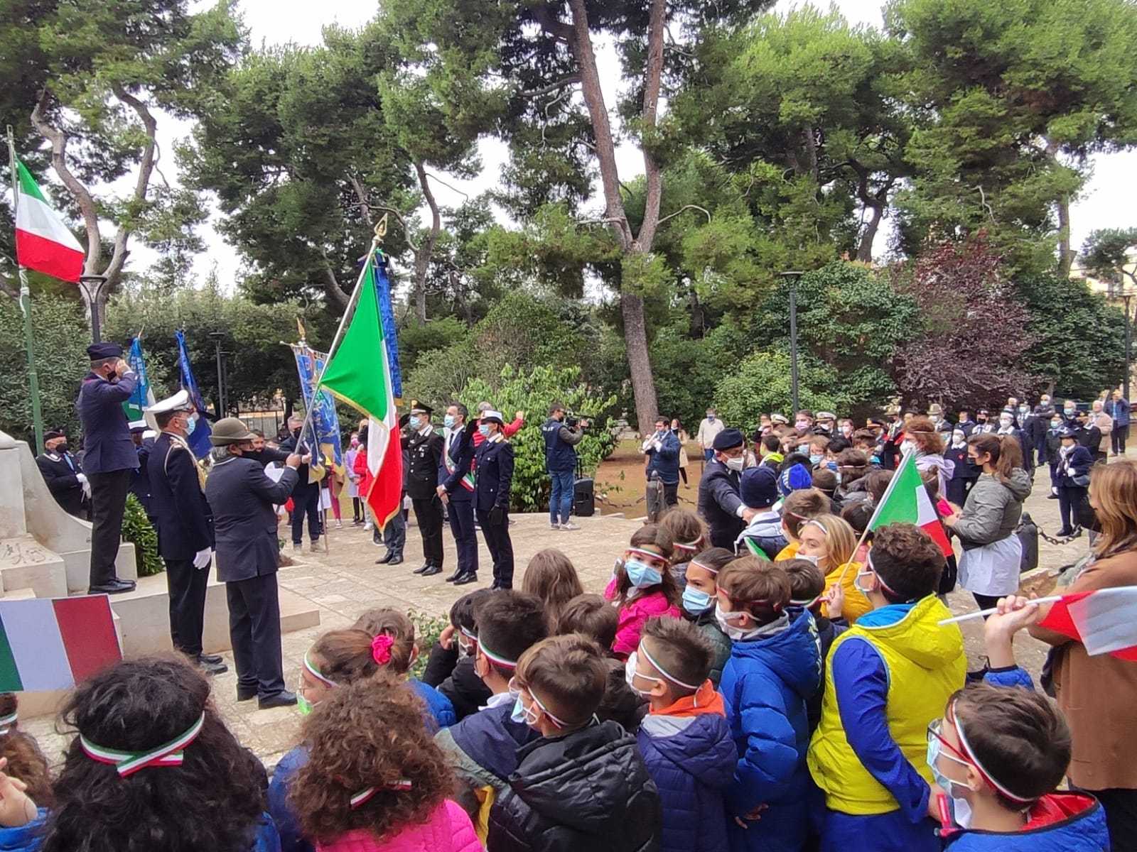 FASANO – Il 4 novembre è un giorno importante per la storia d’Italia: è la festa dell’Unità Nazionale e delle Forze Armate. In occasione di questa ricorrenza, gli alunni delle classi quinte del 2° Circolo Didattico “Giovanni XXIII”, diretto dalla prof.ssa Federica Gennari, si sono recati in corteo, presso la villa comunale di Fasano, insieme alle autorità civili e militari, rispettando le regole anticovid, per rendere omaggio al Milite Ignoto, il soldato italiano, reso irriconoscibile dalle ferite e la cui salma riposa presso l’Altare della Patria a Roma. La cerimonia, presieduta dal Dott. Giuseppe Galeota, dopo la lettura del “Saluto del Presidente della Repubblica” e di un discorso commemorativo, è stata arricchita da vari interventi degli alunni di entrambi i plessi, con poesie e letture, concludendo con il canto dell’Inno nazionale.