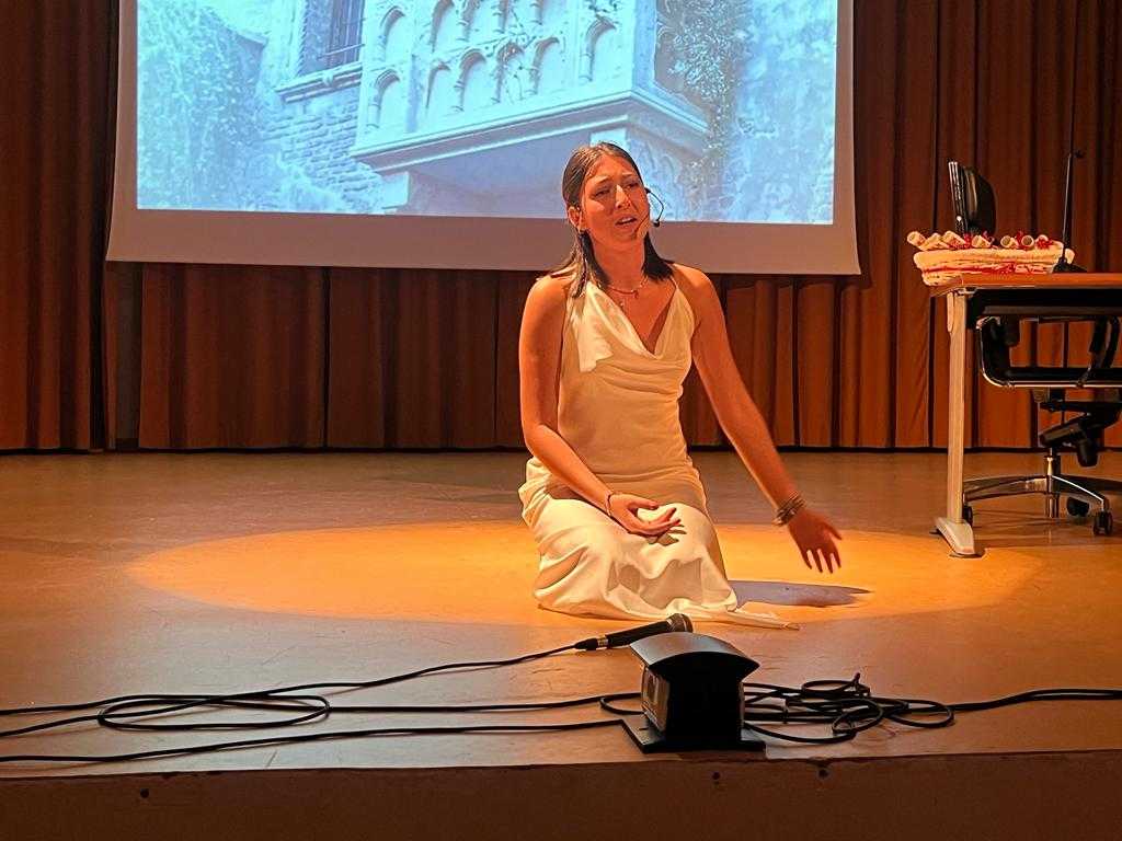 E sulle parole è stata sapientemente modellata l’Accoglienza dei liceali di quest’anno. Le parole hanno un enorme potere: possono essere fonte di bellezza, di poesia, di creazione, di vita, di nutrimento per l’anima, ma, come tutto in questo mondo, hanno anche un lato oscuro che le ritorce e le opprime, le schiaccia e le strangola. “È una pena che la ricchezza linguistica che abbiamo a disposizione a volte venga usata per falsare la realtà o ancora peggio per mentire e discriminare; nessuna parola merita un tale uso. – ha detto la Dirigente nel suo discorso di apertura – Le parole sono dei semi piantati, perciò dobbiamo avere molta cura ed attenzione quando le usiamo, perché poi queste parole crescono e si radicano nelle persone che le ricevono. Attraverso le parole ognuno di noi può dare a qualcun altro la massima felicità oppure portarlo alla totale disperazione, le parole, infatti, possono essere lievi e delicate, ma anche taglienti e tempestose come un uragano. Possono essere pietre. Esse sono l’arma più potente che l’uomo ha. E succede che ci si penta delle parole, di quelle dette e non dette.”