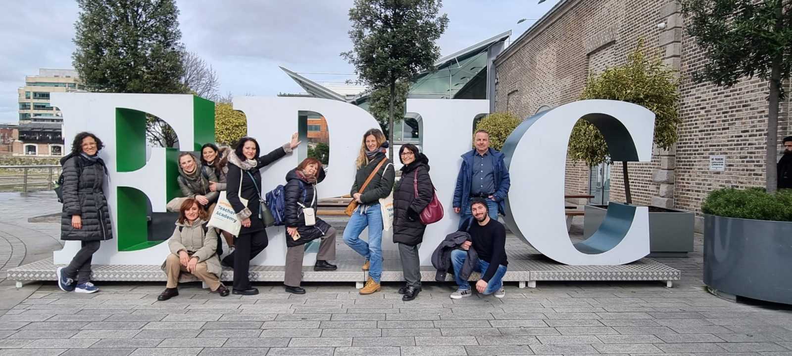 Tra le attività di formazione dell’Accreditamento Erasmus Plus rientra la mobilità all’estero che ha coinvolto otto docenti, i proff. Maria Stella Buccolieri, Lucia Carparelli, Alberto De Giorgi, Loredana Del Faro, Maria Dibello, responsabile del progetto e coordinatrice del gruppo, Assunta Ernandes, Agnese Legrottaglie e Daniela Viscanti, i quali, a partire da lunedì 4 marzo, sono stati impegnati nel corso intensivo e avanzato di lingua inglese presso la Europass Teachers Academy di Dublino, nella Repubblica d’Irlanda, tenuto della docente Gillian Cook in orario curriculare. In tale corso i docenti hanno avuto occasione non solo di esercitare e migliorare il livello di lingua inglese, ma anche di approfondire metodologie didattiche innovative, come l’insegnamento in CLIL (Content Language Integrated Language), vale a dire l’insegnamento delle discipline non linguistiche in una lingua straniera, l’inglese nel caso specifico dei docenti della SSIG “Bianco – Pascoli”; metodologie informatico – digitali come l’integrazione della didattica con e attraverso l’AI, l’Intelligenza Artificiale; e metodologie di insegnamento inclusive, cooperative e di flipped classroom, la “classe capovolta”, efficace per favorire un apprendimento dei discenti di tipo olistico.