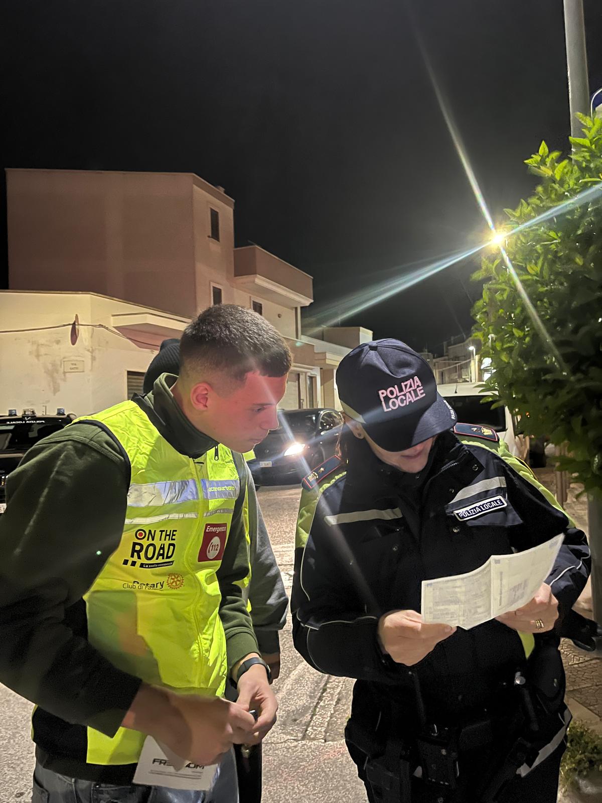 Dopo la restituzione, la prima esperienza pugliese di “On the Road” si è conclusa nel modo più significativo possibile: i ragazzi hanno preso parte a un turno serale con la Polizia Locale di Fasano, partecipando alle operazioni di prevenzione sulla sicurezza stradale e interventi di sicurezza sulla viabilità notturna.