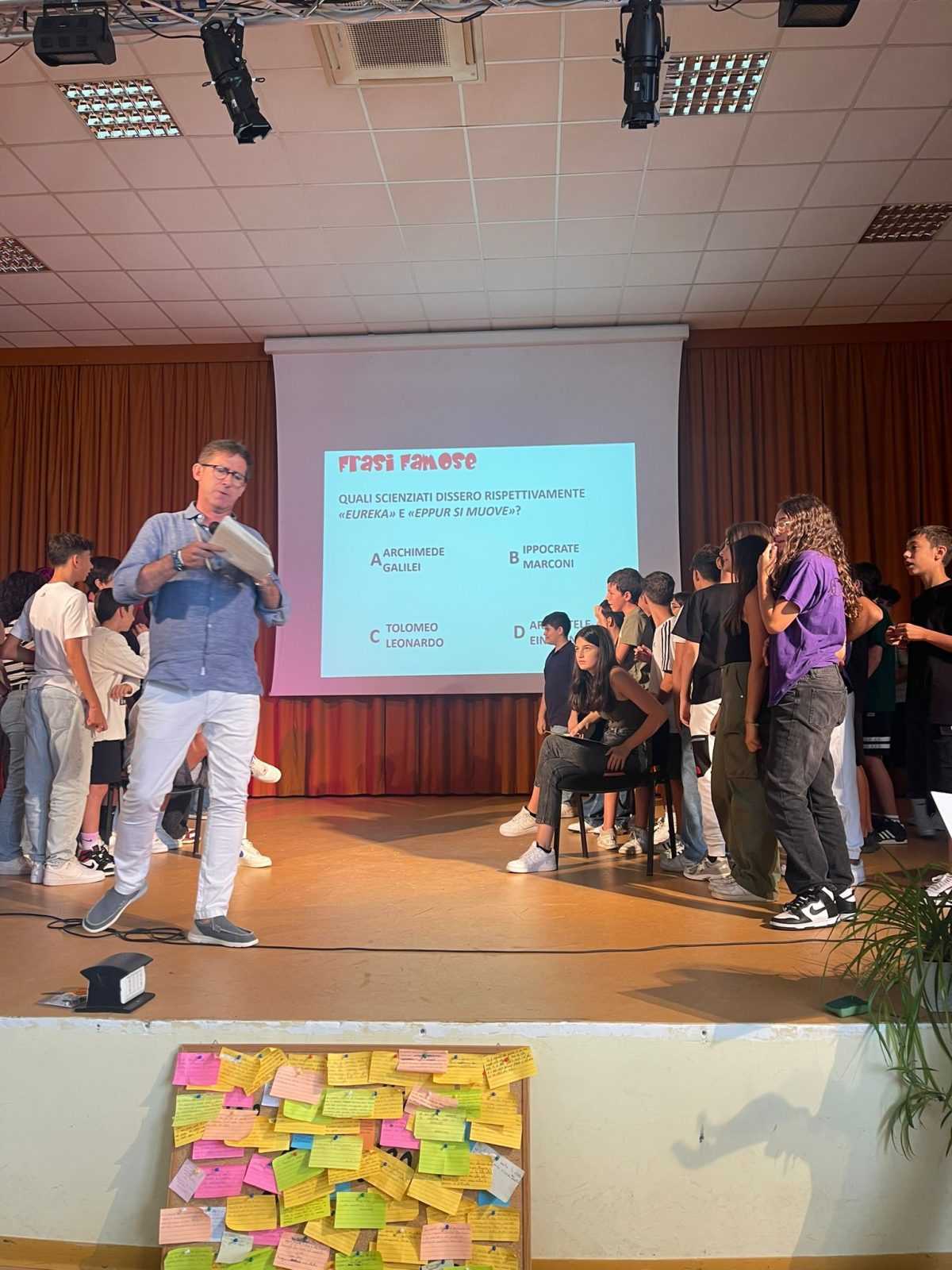 Le prime classi, dopo una mattinata da spettatori, sono state invece dirette protagoniste del secondo giorno di accoglienza, apertosi con la “Festa dei Lettori”, con i ragazzi che hanno scritto e letto una serie di spunti di riflessione personali, frutto di quanto vissuto nella giornata precedente, e culminato con il gioco “Divertimparando”. Nello specifico le classi si sono sfidate, tra gioia genuina e risate, come se fossero protagoniste di un quiz televisivo a sfondo culturale, con l’obiettivo primario non legato alla vittoria, ma al favorire l’affiatamento tra coloro che per cinque anni affronteranno insieme, tra soddisfazioni e complessità, un percorso indimenticabile tra i banchi del Da Vinci.