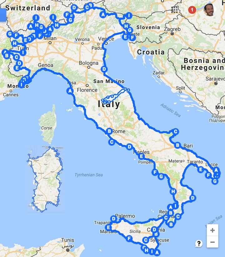 Per un anno di corsa ricalcando i confini nazionali per un tracciato di circa 8800 chilometri