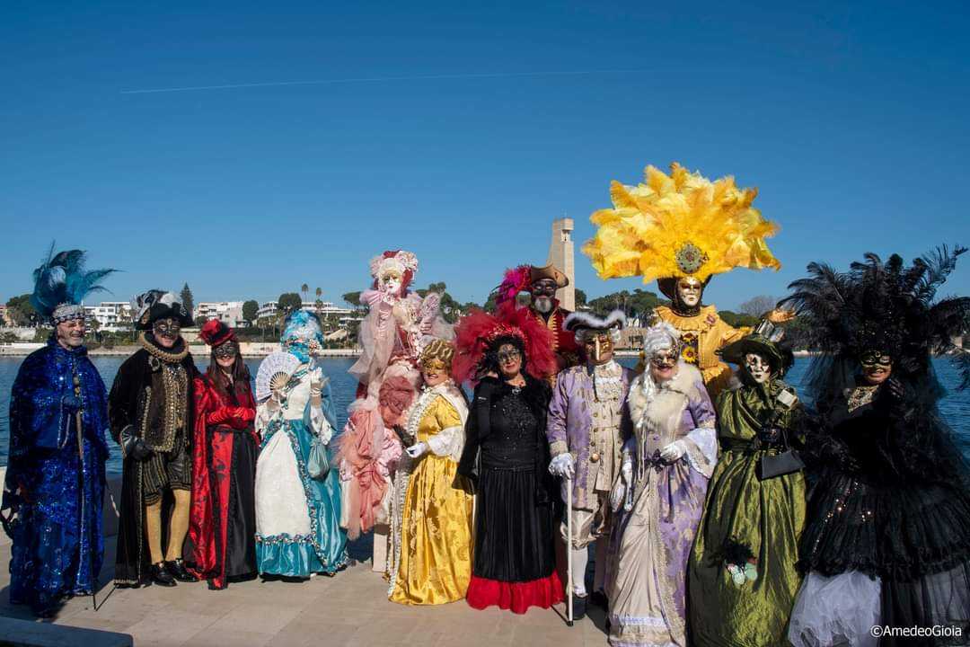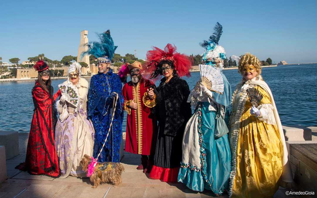 Durante la mattinata di domenica, il nutrito gruppo di figuranti mascherati ha sfilato dapprima sul porticciolo di Brindisi, per poi affacciarsi tra la gente intenta a fare colazione seduta ai tavolini dei bar. La peculiarità del gruppo è stata animare allegramente la giornata passeggiando tra il pubblico che si accalcava curioso. Gli abiti sontuosi, liberamente ispirati allo stile veneziano, hanno catturato l’attenzione di tutti.