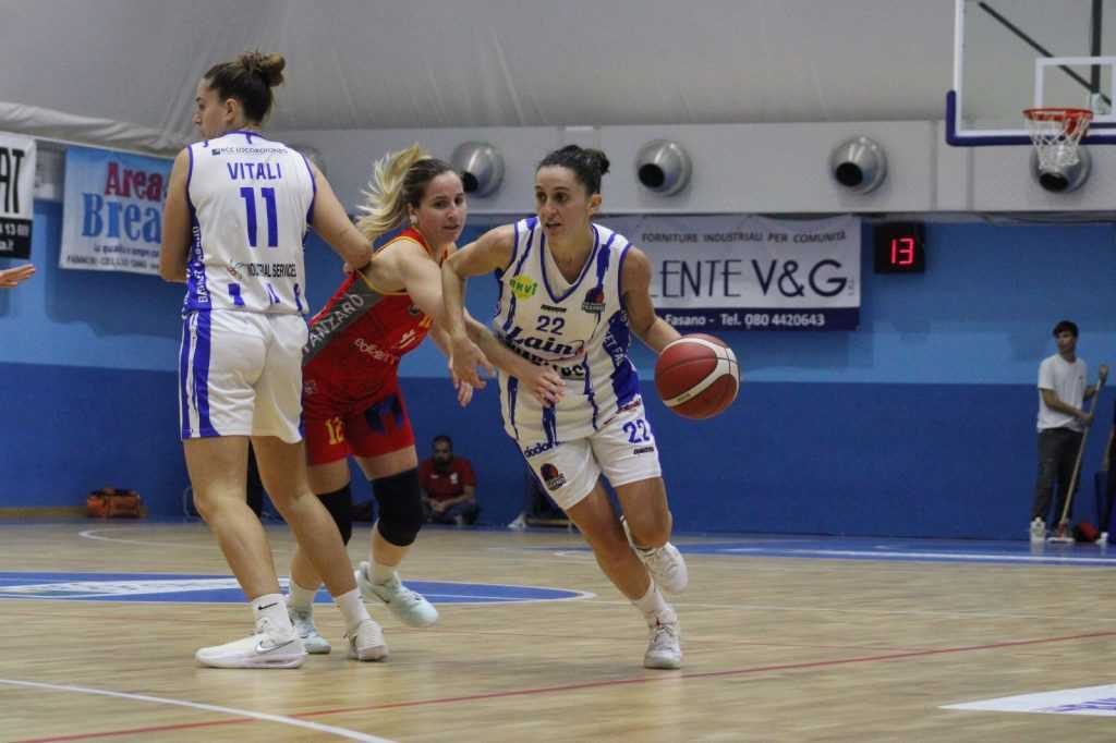 CORATO (BA) – La Lain basket Fasano mette a segno la terza vittoria di fila superando la New Juve Trani (48-53), nella sfida valevole per la sesta giornata e giocata al PalaLosito di Corato per indisponibilità del palazzetto di Trani. Un vittoria che proietta le ragazzi di coach Giuseppe Lovecchio nella zona alta della classifica evidenziando l’operato di Alessia Vitali che ha messo a referto 15 punti e 8 rimbalzi. Fondamentali anche i contributi di Roberta Lucchesini, anch’essa a quota 15 punti, e Grazia Giuranna con 7 punti e 5 rimbalzi. Tra le padrone di casa spiccano le performance di Matilda Cherubini e Ellen Sovi Olivia Jarvinen, rispettivamente con 15 e 13 punti.